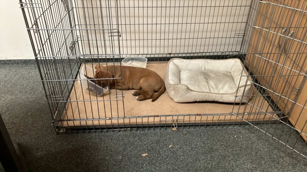 Den 2. Vezu dceru do školy a prďolu si beru do práce. V kanclu jsme 2 lidi a malej pes na 64m2. Mám připravenou klec a prckovi říkám, že když se bude chovat slušně, tak budou dvířka otevřený. Uvnitř fabriky, korporátu, vlastním asi 30m2 trávníku s břízou, tak chodíme venčit tam, je to hned u našeho baráku. Funguje povel - domů pudem, až se vyčuráš - ale polední pauze se protáhla na 45 minut. Jedeme v režimu - 45 minut spí, hodinu celkem na venčení a demolování krabic v kanclu. Klec bere jako svoje místo a sama tam leze na spaní. O půl druhé budím psa, bereme dceru ve škole a jedou domů.6 bodů