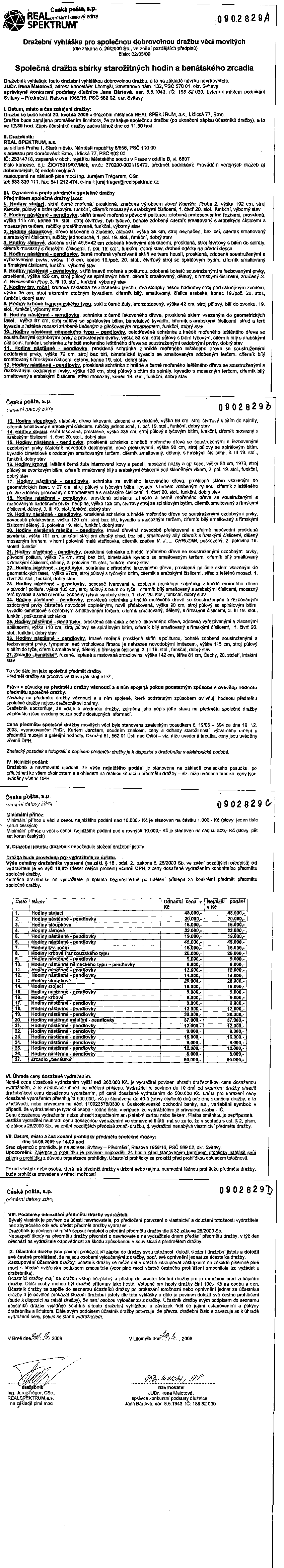 20.5.2009 se v Brně draží 26-tery (šestadvacatery) hodiny - nástěnné, stojací, krbové, vyvolávací cena od 6 tis. do 48 tisíc korun