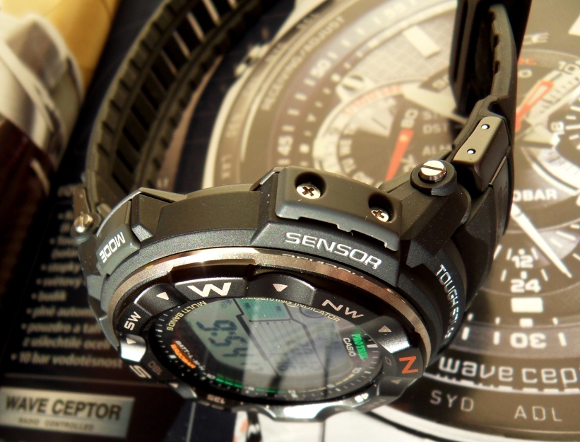 Matně si vzpomínám, kdy jsem se poprvé setkal s digitálkama. Už je to hodně dávno, někdy v polovině sedmdesátých let minulého století. Fascinovaně jsem na ně pokukoval v Klenotech na Václavském náměstí.Číselné zobrazení času a přesnost v řádu jednotek sekund za den byla tehdy neskutečná, tak jako tehdy jejich cena, která byla 5 - 6x vyšší než cena běžných primek. Trvalo ještě asi pět let, než jsem se na první digi zmohl i já. Nepamatuji si na značku, ale byly úžasné. Přesnost činila 7 s/24 hod. a já celý týden nemusel hodinky seřizovat. Teprve dále později jsem se seznámil se značkou Casio. Jejich hodinky, ať digi, ručičkové nebo kombinace jsme snad měli všichni. Značku Casio, produkující klávesové nástroje, foťáky, různé databanky a příslušenství a samozřejmě i hodinky, známe všichni. Počítačová společnost Casio byla založena v Tokyu 1946 rodinou Kashio (4 bratři: Toshio, Kazuo, Tada, Yukio a jejich otec). Název Casio je poangličtěná verze Kashio. Po Druhé světové válce rodina věřila, že západně znějící jméno jim přinese větší obchodní úspěch. Možná si myslíte, že kalkulačka byla jejich prvním výrobkem uvedeným na trh. Nebyla! První byla vyvinuta dýmka Yubiwa, která sloužila k držení cigaret. Ta umožnila kouřit cigaretu až k filtru a mít stále obě ruce volné. Dýmka se stala velice úspěšnou a přinesla společnosti úspěch. V roce 1949 rodina Kashio vyvinula elektronickou kalkulačku, kterou doplnili v roce 1954 solárním článkem. Nedlouho poté začala společnost vyrábět počítače a hodinky. A dnes se v jejich katalogu hodinek zhlédne i zapřísáhlý zastánce mechanických hodinek. Vždyť G-shocky nebo Pro-Treky jsou modely, které nenechají nikoho na pochybách, že se jedná o kvalitní výrobky. Škoda jen, že jejich sortiment u nás a v mateřské zemi je tak odlišný. I když se přiznám, že za některé jejich modely bych 2 - 5 tisíc doláčů nikdy nedal. Ale abych se konečně dostal k modelu PRW-2500-1ER. Tento model vychází z edice Casio sport - Pro Trek. Hodinky jsou především určené pro venkovní aktivity a tomu odpovídá i jejich výbava - stopky, barometr, výškoměr, kompas. Kdysi jsem vlastnil něco podobného od tissotů - T Touch-Expert, ovšem byl to můj největší úlet, jejich cena výbavě neodpovídala, a tak se TISSOTy u mně dlouho neohřály. Casia jsem kupoval zde v nepříliš oblíbeném Planeu, se kterým jsem já měl dosud dobré zkušenosti. Hodinky jsou v balení odpovídající jejich charakteristice. Vnější obal tvoří papírová krabička z recyklovatelného papíru, v níž je uložená dřevěná dóza s hodinkami. Součástí je spousta potřebných a nepotřebných dokumentů, včetně cizojazyčného návodu. Planeo však přidává i 68 stránkovou podrobnou publikaci, která vás bezpečně provede všemi funkcemi. Základní funkce: 1. Plně automatické dvoustupňové podsvícení 2. Chladu odolná konstrukce ? odolné do -10° 3. Solární napájení s indikací stavu baterie 4. Řízené radiovým signálem (EU, USA, Japonsko, Čína) 5. Digitální kompas 6. Výškoměr do 10.000 m 7. Možnost automatického ukládání výškových dat 8. Barometr v rozsahu 260 ? 1100 hPa 9. Teploměr v rozsahu -10 až +60 10 Ukazatel fáze měsíce 11. TIDE grafické znázornění přílivu a odlivu 12. Funkce světového času 13. Stopky, timer, yacht-timer, 5denní alarm 14 Automatický kalendář 15. Otočný bezel (při použití kompasu) 16. WR 200M 17. Minerální sklo 18. Rozměry a váha: cca 56.3 mm x 50.6 mm x 15.0 mm, 80,6 g Hodinky jsou celé z pryskyřičné odolné hmoty. Až příliš lehce otočný bezel je od pouzdra oddělen chromovaným kroužkem, navozující dojem luxusnosti a přítomnosti kovu. Displej, umožňující volitelná zobrazení, je kryt minerálním sklíčkem. Vnitřní luneta je tvořena solárním kroužkem, a při zapnutí podsvícení je vidět opravdová velikost displeje, z jehož velikosti vnitřní luneta docela slušně ukusuje. Zabarvení vnitřní lunety do modra vzbuzuje optický klam, že sklíčko má antireflex. škoda, že je to jen klam. Ale i tak je displej velmi dobře čitelný, přičemž jeho čitelnost za snížených světelných podmínek je zajištěna dvoustupňovým (1,5 nebo 3 sekundy) podsvícením. Jednotlivé funkce se přepínají masivními tlačítky. Při měření tlaku a výšky je nutné provést nejprve korekci výšky, aby měření bylo objektivní, neboť jak je známo, barometrický tlak a výška se vzájemně ovlivňují. Obdobnou korekci je možné provést u teploměru, tak i u kompasu (korekce magnetické deklinace a dvousměrné kalibrace). Hodinky přes svoji velikost dobře padnou i na moji menší ruce, jsou lehké a odolné. Jejich základní funkce, solární napájení, rádiem řízené, vysoká voděodolnost a něco navíc spojené s elegantním tvarem je přímo předurčují nejen pro outdoorové aktivity, ale jsou vhodné i pro denní nošení. Na závěr přikládám několik obrázků.
