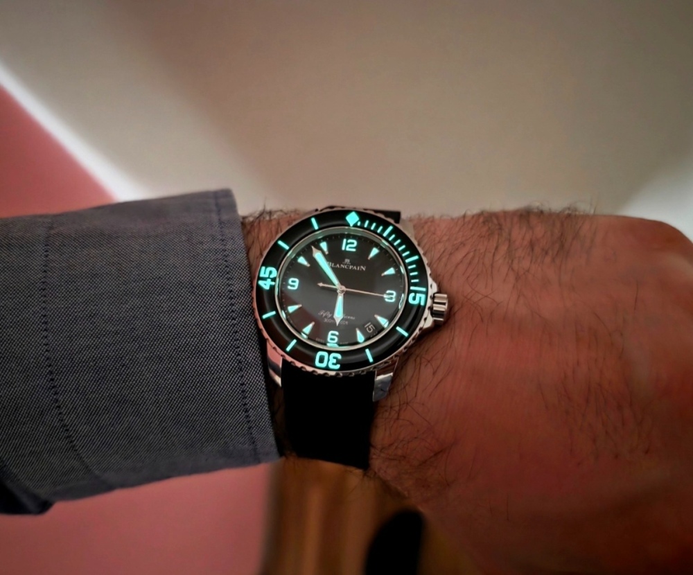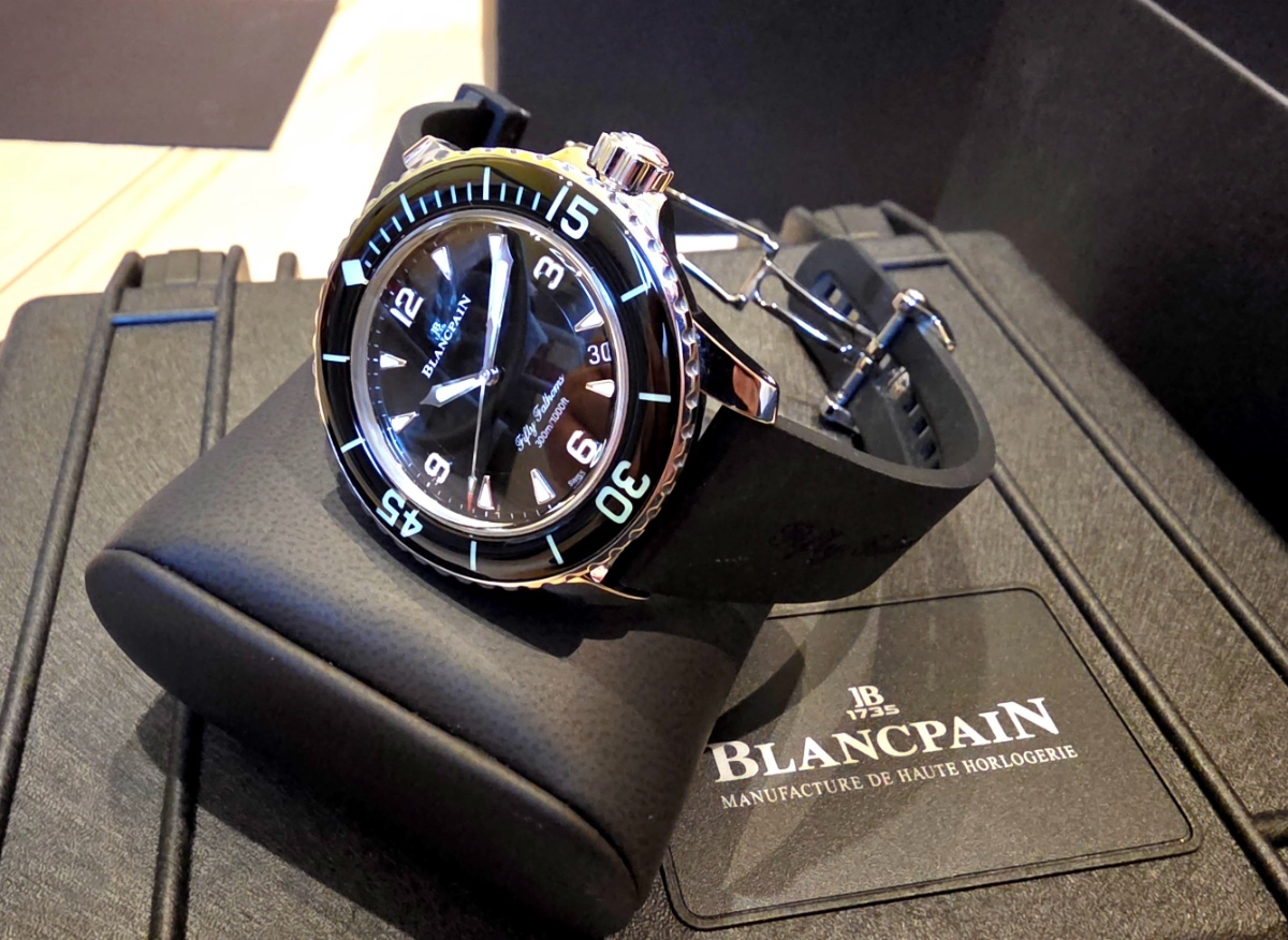 Nabízím k prodeji Blancpain Fifty Fathoms 5015-1130-52B – legendární model, který definoval kategorii profesionálních potápěčských hodinek. - Automatický manufakturní kalibr Blancpain 1315 s rezervou chodu 120 h - Safírová luneta, WR 300 m, průměr 45 mm - Naprosto kompletní a famózní balení – originální box, papíry, karta atd... - Stav nádherný opravdu jen párkrát na ruce, jsou z roku 2023. K hodinkám je originální překlápěcí spona, originál kaučuk Blancpain, sailcloth řemínek Blancpain a další guma s překládání sponou. Aktuálně po tlakovce a kontrole chodí max do +2s. Cena: 245 000 Kč Preferuji osobní předání s kávou na mě...