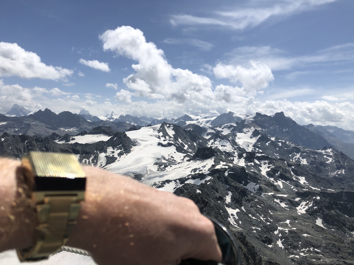 Tak konečně jsem se dostal k tomu, abych se rozepsal trochu více. V rámci chronomagu jsem jako putovní hodinky měl k dispozici G-Shocky, pak Archimede a tohle jsou třetí hodinky u kterých jsem se zúčastnil jejich putování mezi členy. Určitě děkuji organizátorům za možnost si je vyzkoušet, nebudu si nic nalhávat, určitě to nejsou hodinky, které když bych viděl za výlohou obchodu, tak bych měl nutkání si je koupit A taky díky Markovi, který byl přede mnou v pořadí a předal mi je o něco dříve než musel, mohl jsem je tak i trochu "povozit" v rámci dovolené. Samotné předání hodinek působilo trochu jako ceremoniál, protože v tašce je spousta věcí včetně dárku od Helveti pro všechny účastníky tohoto projektu. Na hodinkách mě jako první překvapilo jak působí lehce na ruce, slovy Karla Gotta - "to jsem opravdu nečekal". Naštěstí Marek je podobný hubeňour jako já, takže jsem byl ušetřen nastavování tahu. Co mě jako další zaujalo ale hlavně celou dobu nošení otravovalo je nutnost použít druhou ruku při odečtu času. Párkrát jsem se přistihl, že jsem se pro odečet času raději mrknul na mobil než abych zmáčknul tlačítko na hodinkách. Jinak hodinky samozřejmě poutají pozornost, nejčastější poznámky jsou typu pasák nebo kolotočář, al věřím, že svoje fanoušky si můžou najít. Nosil jsem je i do práce ke košili a neměl jsem pocit, že by se to nějak spolu mlátilo. V rámci putování s hodinkama jsme je dostal mimo jiné až na Mont Fort do výšky 3330m (samozřejmě lanovkou ) a nebo je povozil parní lokálkou v Oberwiesenthalu. Nyní je budu předávat ještě dál, takže ještě jednou díky za možnost se této akce zúčastnit. Jinak fotit neumím a navíc jsem zjistil, že mám hnusnou ruku, tak se omlouvám za fotky Předání v Přelouči Lauterbrunnen Mont Fort - v pozadí Matterhorn