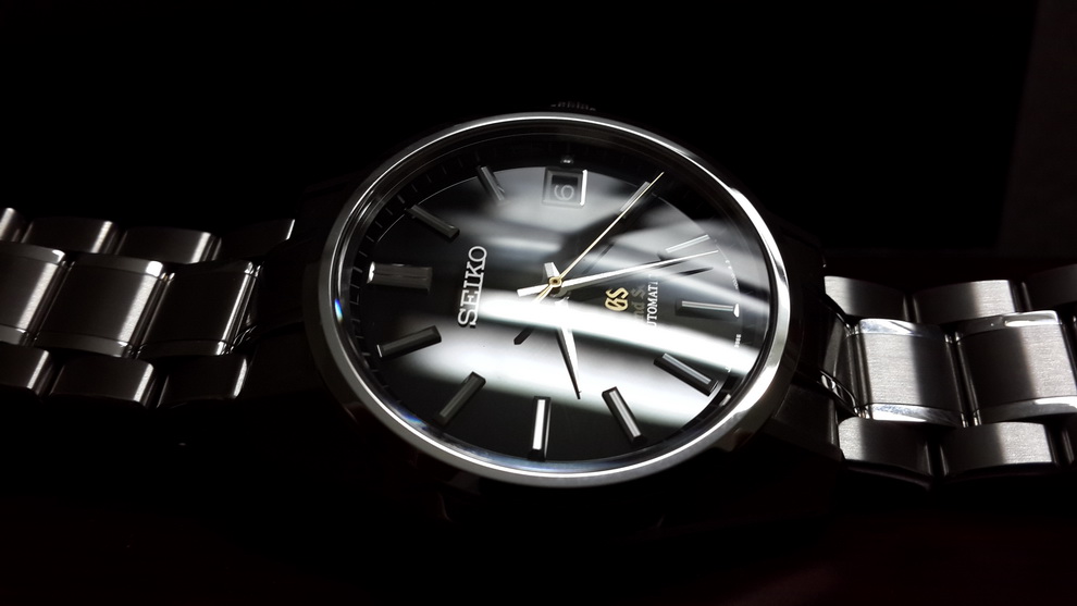 V GS dovedou vyrobit bílé a černé číselníky na tisíc způsobů a každý vyvolává naživo jiný dojem. Kdybych si musel vybrat jen na základě těchto fotek, tak bych se přiklonil k tomu světlému. Zdá se, že dá víc vyniknout propracovaným tvarům indexů a ruček a nabídne větší proměnlivost podle světelných podmínek. Tento černý povrch na mne působí matným nevýrazným dojmem (není to typ hluboké magické černě vyvolávající přestavu zrcadlově rovné hladiny jezera za bezměsíčné noci, který se k GS tak hodí).