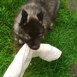 9 týdnů na světě a prvních 10 dní spolu. Vlčí špic tzv. původního německého typu, staré středoevropské plemeno.