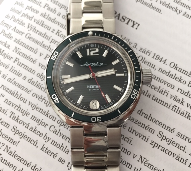 Vyzerá dobre. S týmto púzdrom mám dilemu. Najskor som si ich kúpil ako favorita v celej flotile Amfibií, ale nejako mi nesedia... mám klasický cifer modrý s potápačom. Dal som si tam rovnakú lunetu ale problém je v remeni. Nie a nie tam trafiť niečo čo by sa mi tam hodilo.... asi máš pravdu, že to púzdro potrebuje remeň ktorý vyplní priestor až na púzdro...
