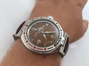 Tak som si vymenil cifer a remienok na 25USD použitých hodinkách z Ruskej federácie cez ebay :-) Niekomu som tu videl presne túto kombináciu tak som ju opajcol :-) + remeň a cifer asi 10 USD spolu.