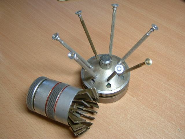 Tak už jsem zjistil jaký typ strojku by tam měl asi být. No, je to dost děsnej stroj bez kamenů. Doma jsem nakonec vyhrabal dvě trosky a docela tam pasuje. Jenže u těch strojků co mám chybí součástky, takže nezprovozním ani jeden. Kdyby se někomu válel podobný strojek doma, stačí nefunkční, tak já bych ho využil.