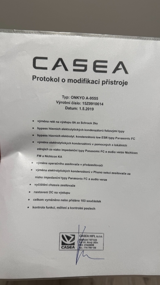 - stereo zesilovač Onkyo A-9555 s profi modifikací od HiFi Casea
