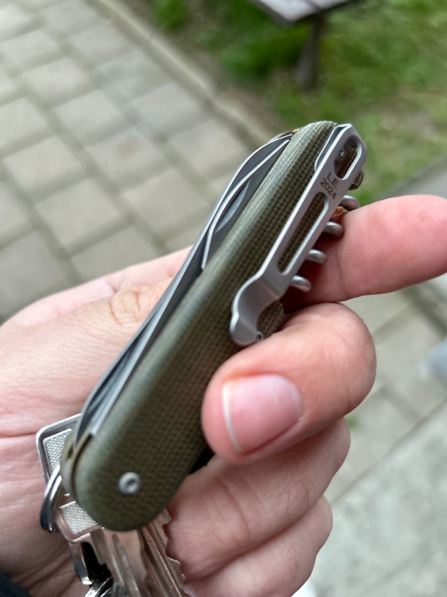 1. Micarta hnědá s mosaznou destičkou - 4 2. Micarta zelená s mosaznou destičkou - 21 3. Micarta z každé strany jiná (kombinace zelená hnědá) s mosaznou destičkou - 8 4. G10 bez destičky - gravírování přímo do střenky - 1 5. G10 s mosaznou destičkou
