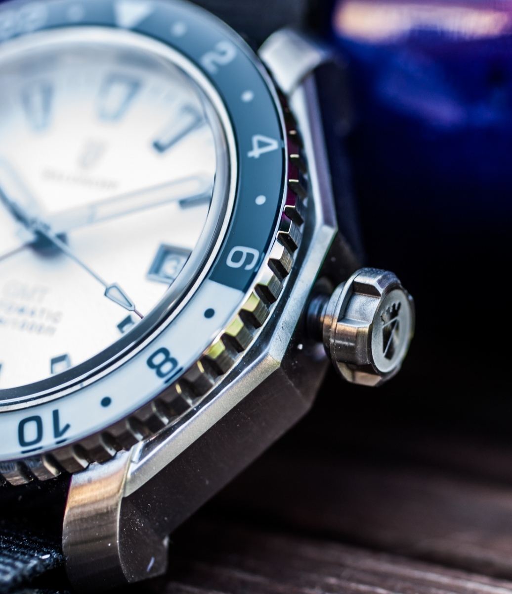 Hele proto tyhle hodinky máte, ne? Puritáni budou ukazovat, že ty pravé GMT hodinky mají tuhle a tamtu funkci, hodinová ručka se posouvá nezávisle a tak dál a podobně. Ale to, co je důležité na GMT hodinkách je prostě ta ručka, která obkrouží cifr jednou za 24 hodin, na tom se snad shodneme. Steinhart to dělá tak, že na druhé pozici korunky se mění datum a GMT ručka, poslední pozice mění čas tak, jak jste zvyklí u ostatních (nonGMT) hodinek - se s tim smiř.