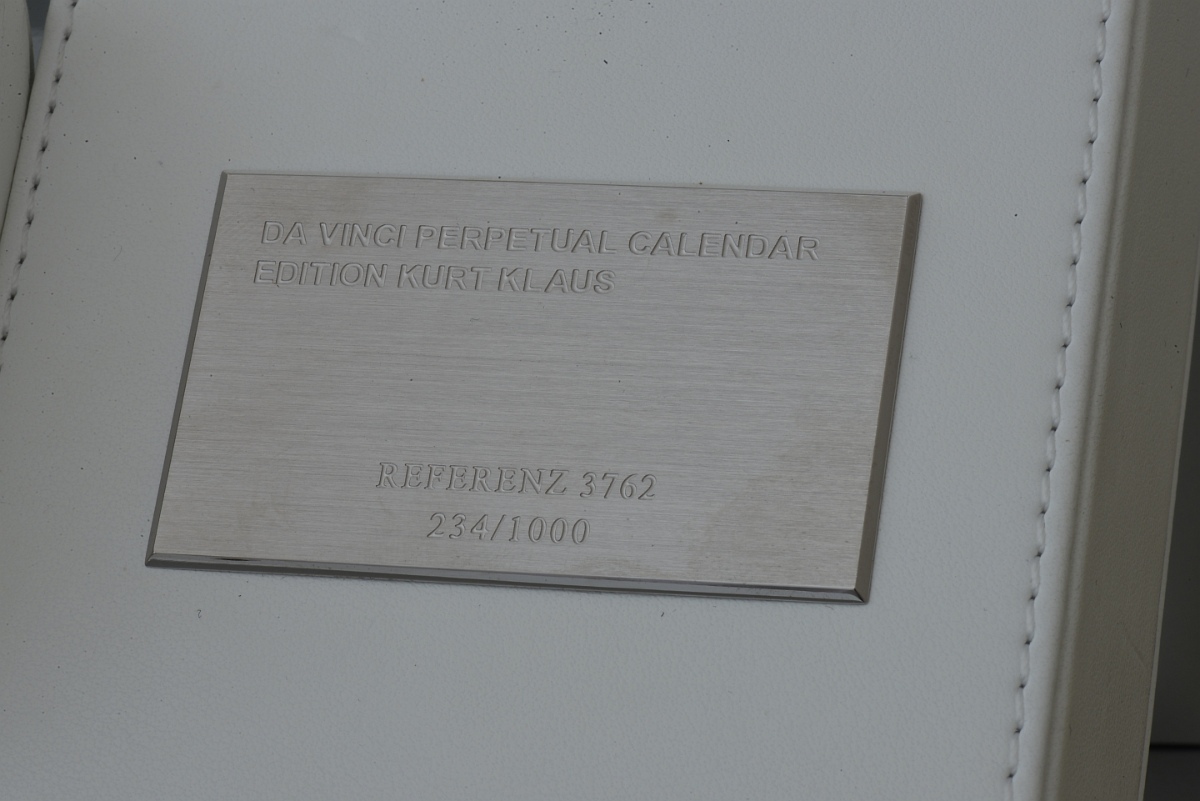 Nabízím mistrovský kus z dílny IWC. Jedná se o model IWC Da Vinci Kurt Klaus, který je vybavený jednou z největších hodinářských komplikací světa a to věčným kalendářem. Hodinky ukazují den v týdnu, datum, měsíc, měsíční fázi, rok, hodiny, minuty, vteřiny a jsou vybaveny chronografem. Hranaté zaoblené pouzdro je vyrobené z růžového zlata a má rozměry 43,1 x 51 milimetrů. Na výšku měří 12,5 milimetru. Luneta je leštěná, zbytek pouzdra je místy na hranách leštěný a jinak kartáčovaný. Šroubovací korunka má tvar kužele a nese logo IWC. Tlačítka chronografu jsou místy leštěná a místy kartáčovaná. Černý číselník je zdobený gilošováním, nese plastické zlaté indexy, zlaté jsou také všechny použité ručky. Na pozici 12 je ukazatel měsíční fáze a čítač minut chronografu. Na pozici 3 je ukazatel data. Na pozici 6 jsou ukazatele měsíce a čítač hodin chronografu. Na pozici 7:30 se nachází čtyřmístný ukazatel roku. Na pozici 9 je ukazatel dne v týdnu a vteřinová ručka. Centrální ručka patří k chronografu. Chronograf se ovládá dvěma tlačítky a zbytek včetně věčného kalendáře pouze korunkou. Toto je právě unikátní systém Kurta Klause. Jeho podpis je na pozici 4:30. Číselník kryje safírové vypouklé sklíčko s oboustranným antireflexem. Zkosené dýnko je na bocích leštěné, na ploše kartáčované. Dominuje mu gravírovaná podobizna Kurta Klause, název International Watch Co., pořadové číslo kusu limitované edice (v tomto případě 234/1000) a název Edition Kurt Klaus. Dýnko je přišroubované 8 šroubky. Automatický kalibr nese označení 79261 a postavil jej Kurt Klaus. Má 39 kamenů, průměr 30 milimetrů, rezervu nátahu 44 hodin, frekvenci 28.800 polokmitů za hodinu (4 Hz). Mezi jeho funkce patří vteřiny, minuty, hodiny, věčný kalendář a chronograf. Věčný kalendář je unikátní hodinářskou komplikací, která bere v úvahu všechny složitosti přestupného roku, kdy se měsíc únor prodlužuje o jeden den. Tyto hodinky budou ukazovat aktuální datum až do 31. prosince 2199, poté budou muset mí dědicové nechat vyměnit čísla 22, 23 a 24, pro roky 2200 až 2499. Tato čísla jsou součástí balení, uložená v jakési zkumavce, zalité červeným voskem. Zajímavá informace se týká přesnosti ukazatele měsíční fáze. Podle údajů IWC je tato komplikace tak přesná, že se odchyluje pouze o jeden den za 122 let. Tento konkrétní kus hodinek je koupený nový v ČR u autorizovaného obchodníka a přeed rokem byl na hodinkách prvedený servis. Hodinky jsou v perfektním stavu. Samozřejmě se jedná o kompletní balení včetně dokumentace a boxu. Katalogová cena tohoto skvostu byla kolem 1 mil. korun. Moje mimořádná cena je 499.999,-Kč.