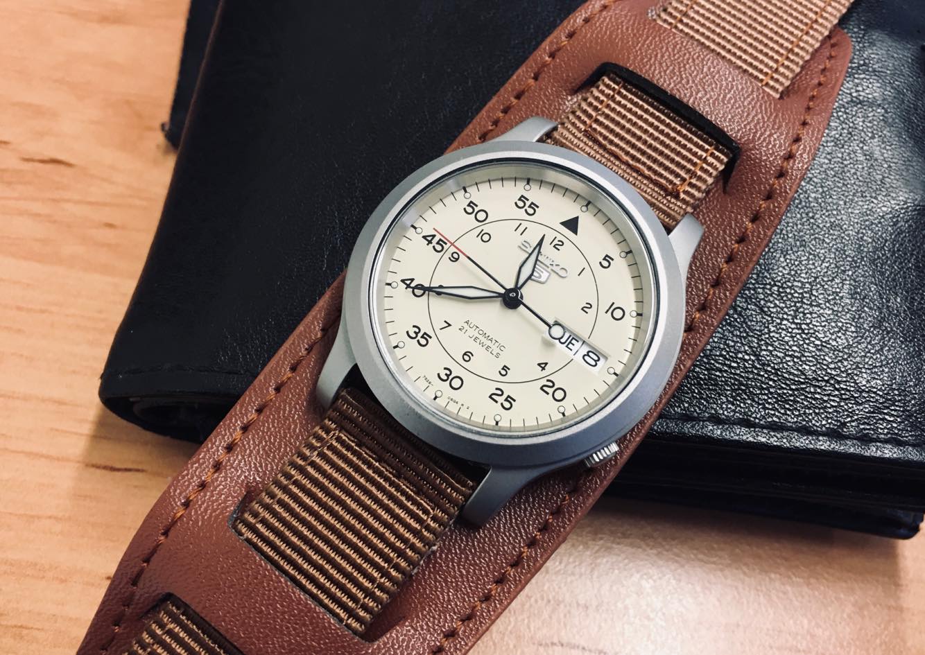 sice lowend , ale jistota v podobe 36mm od Seika SNK809 , ulovil jsem je zde na bazaru , hodne me zaujala ta kremova barva ciferniku a rucicek , proto jsem je zkusil. Stridam s SNZG15kama coz jsou 42ky , ale musim rict , ze ac jsem si zvykal na 36mm tak me prirostly k srdci svou lehkosti a pohodlnosti a jsem rad , ze jsem je nakonec vzal . A to jsem byl zvykly na potapky s kovovym tahem 40+