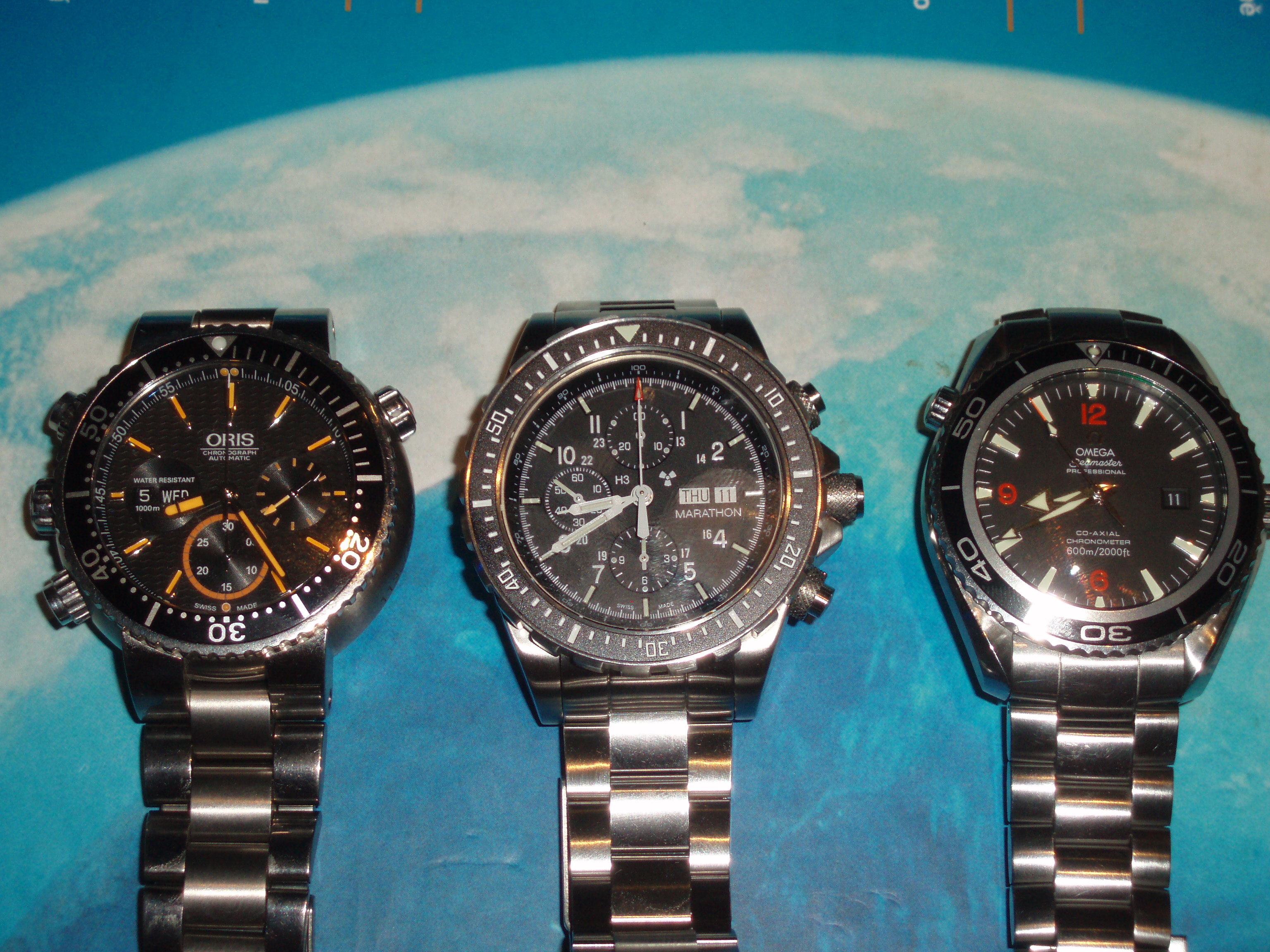 Tak chlapi dnes jsem se stal majitelem asi prvních marathonu csar v republice.Dojmy jsou skvělé.Sú to veliké mašiny.Děkuji touto cestou Kubsonovi,Snowimu a Mikymi každý odvedl u těchto hodinek svůj díl,takže kluci dík.Posílám vám foto srovnání s orisy,planet ocean,revue thomen.Tissoty jsou jak miminka.Fakt první dojmy supr.Takže zde je fotogalerie,zdar Drobek