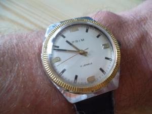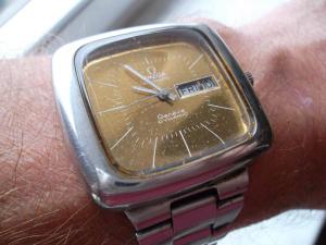 Fotka to zkreslila, cifr je zlatý a dost se blejská. Blbě se to fotí. Sklo je plast, dá se to rozleštit. Tah je origoš OMEGA. Jsou mého příbuzného, kdysi je v Holandsku kupoval nové. Uvidím, ja to dopadne...