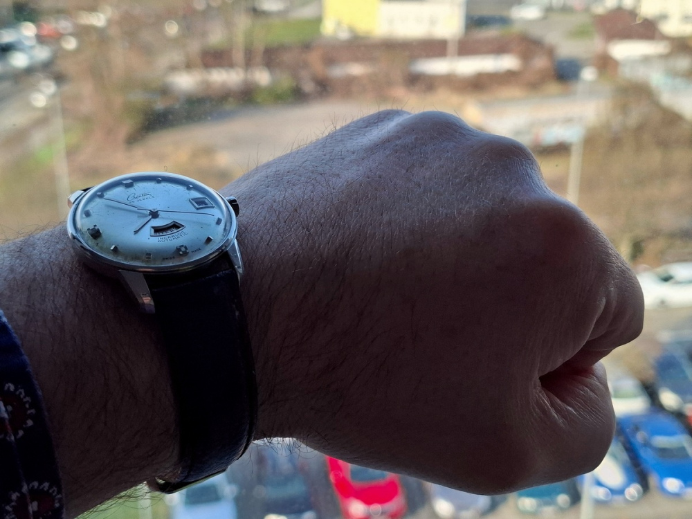 Ta Béčková 43mm pouzdra jsou v tomto tvaru pouzdra příjemně nositelná i na středně velké (spíš menší ruce 17,5 - 18cm). Spousta fotek je ZDE a ZDE. M-ková 44mm pouzdra jsou pro tuto velikost na hranici, ale díky tenkému pouzdru a velmi krátkým nožkám to jde, nějaké fotky na stejné ruce ZDE.