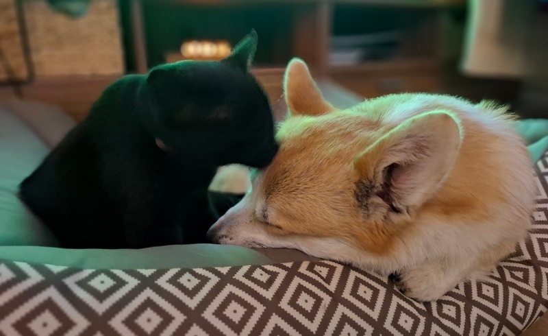 Jo, vydrží, občas tak spí. Jsou to oba dvorní zvířata, pobyt vevnitř mají za odměnu a musí se držet v pelíšku. Teď když je chladněji, tak kocour leží téměř nehnutě i několik hodin. Má ale rád svou svobodu a tak se po nějaké době zvedne postaví se ke dveřím, zamňouká a chce pustit ven. Jinak Mikeš je k Andymu občas až otravně tulivý (furt se o něj otírá).