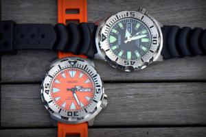 Dnes jsem se dostal k novým Monstrům. Už tady nějaká fota proběhla, nicméně vedle sebe myslím ještě ne. Je to sice srovnání starých černých (Seiko SKX779K1) s novými oranžádami (Seiko SRP309J1), ale rozdíly tam jsou a můžou někomu pomoci při výběru nového přírůstku. Oranžády jsem nahodil na Isofrane. Černé jsem nechal na původní gumě. Nuže do toho: