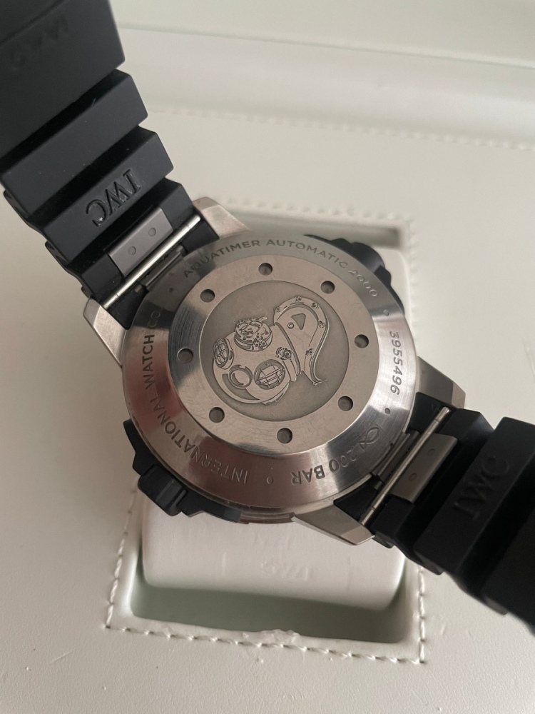2. Ponukam na predaj hodinky IWC Aquatimer 2000 ref IW358002 Priemer 46mm, vyska 20.5mm, puzdro titan, WR 2000m/6000f, in-house IWC 80110, viac tu: https://www.ablogtowatch.com/iwc-aquatimer-automatic-2000-hands/ Komplet balenie, kupovane v 2016. Posledny servis prebehol 3/2024 v IWC od coho je faktura za 1100e. Je k nim aj nahradny kaucuk. Cena 5000e nebranim sa ani zaujimavej vymene.