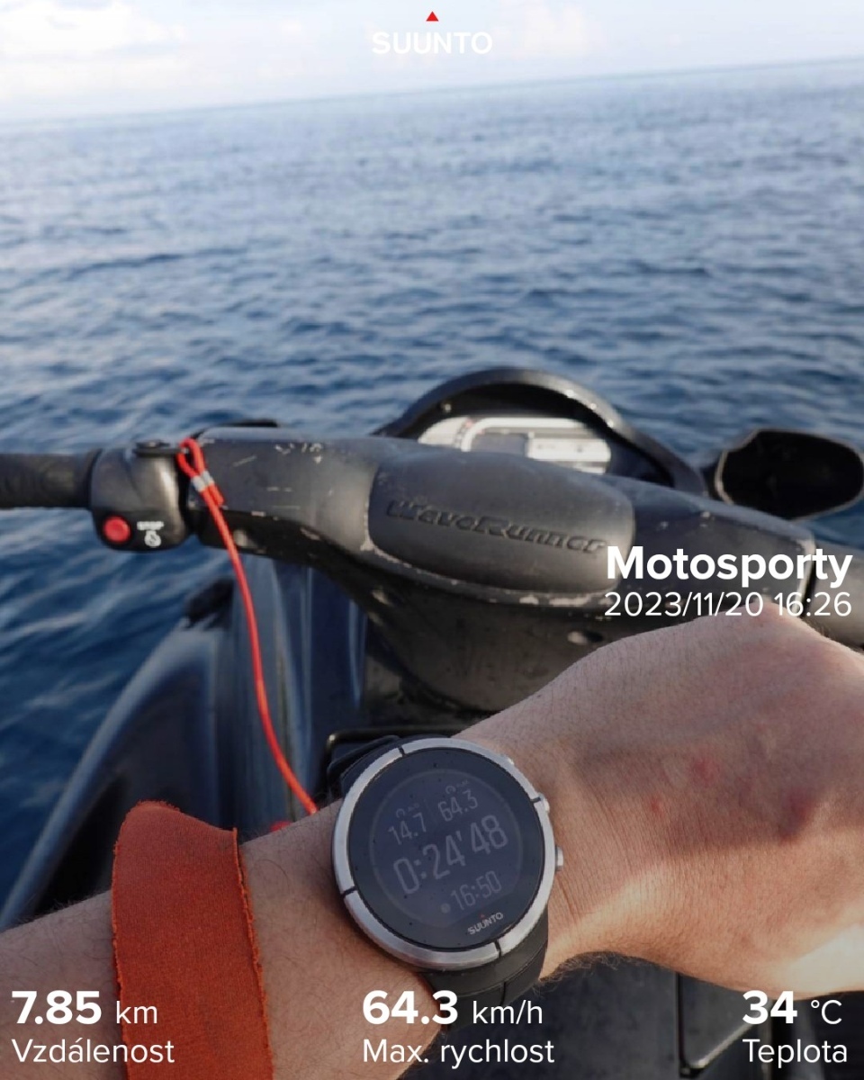 Zdravím z Qataru - Dauhá. Stopky jsem pustil, když jsme se na ostrově nalodili na speedboat směr letiště, zatím čas cesty viz foto