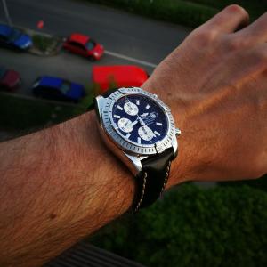 Byl to jenom test na letní dovolenou, ale musim rict,ze oranzovy isofrane se hodi k dost hodinkam.Mel jsem ho na Omega PO8500, Seiko MM a Sumo, Breitling B1, Sinn U1 a vzdycky to vypadalo paradne. Na Chronomatech taky pohodicka. Kazdopadne rychle zpet slušně na kožáka.