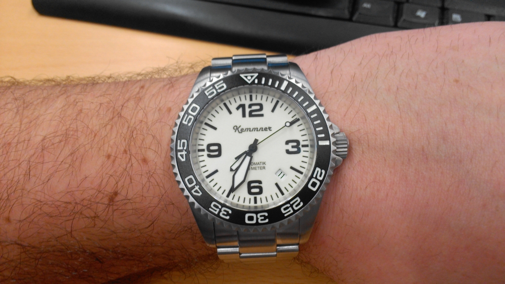 Dekuji. Celkove se sesli tri paramtry, ktre jsem chtel: - chtel jsem vyzkouset Nemecke hodinky - hodinky od "malo" vyrobce - lumi na cifru ne na indexech Sice nebyla pribalena jiz nekolikrate zminovana nemecka sunka zato, ale prisli v peknem cestovnim pouzdru s kaucokovym remenem a s naradim na zkraceni tahu ( 2 x sroubovacek a jeden vystezejkovac). Celkove opravdu maximalni spokojenost. Jeste jsem zvedavy na presnost.