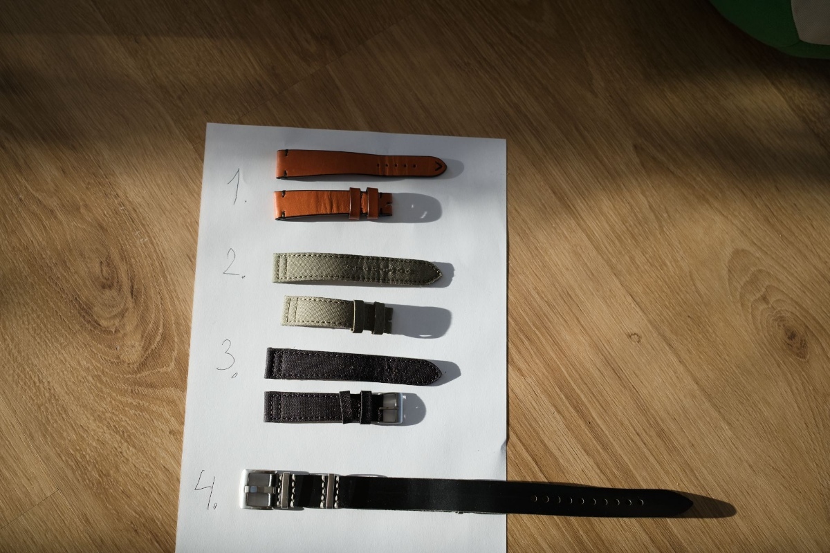 Aktualizace stavu a cen : 1. Řemen od mistra Habadeje, barva Tan, 20-16, rozměry 120 x 80 bez spony, nasazený parkrát, cena 750 Kč 2. Campagnolo Canvas, zelený, 20-18, rozměry 120 x 80 bez spony, nasazený parkrát, cena 450 Kč 3. Campagnolo Canvas, černý, 20-18, rozměry 120 x 80 bez spony, nasazený parkrát, cena včetně spony 550 Kč 4. Kožené NATO Premium, 20 mm, nenošené, 400 Kč. 5. Řemen od mistra Habadeje, barva Cognac, 20-18, rozměry 122 x 83 bez spony, nasazený parkrát, cena včetně spony 750 Kč 6. Řemen od mistra Habadeje, barva světle hnědá, 20-18, rozměry 122 x 83 bez spony, nasazený parkrát, cena včetně spony 750 Kč 7. Kožené NATO Vild, 20 mm, světlě hnědá, nasazeno jednou na hodinky, cena 650 Kč 8. NATO Vild, 20 mm, černé, nasazeno jednou na hodinky, cena 450 Kč Pokud by to někdo vzal všechno, bude cena snížena na 3900 kč včetně Zásilkovny -