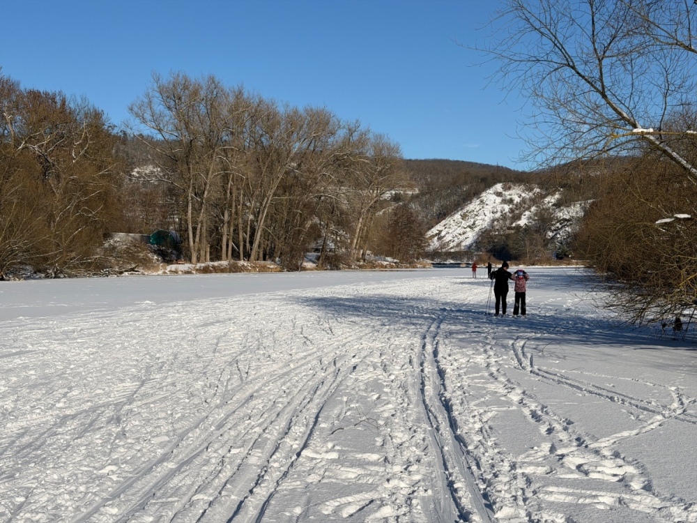 Berounka krásně zamrzla, jel jsem to z Řevnic až na konec Karlštejna a pak okruhem přes golfový hřiště a Zadní Třebáň zpět. Proč se trmácet někam do hor, když je tu takhle krásně