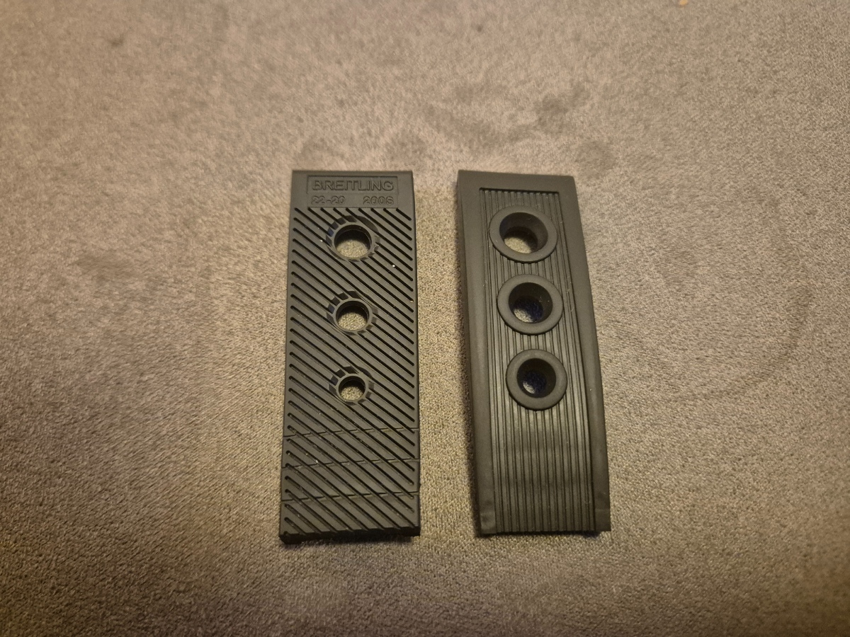 Minule se tu po Breitling řemenech a sponách jen zaprášilo, tak přihodím ještě dva kousky, pro ktere nemam uplatnění. 1) Novo Nappa řemen s trnovou sponou. Poctivý masivní řemen z telecí kůže, ref. 435x, delka 120 & 80 mm, šírka 22 mm. Leštěná trnová spona s plastickým logem, ref. A20BA. Stav viz. foto. Cena nového setu u AD je 6.000,- prodam za 3.500,- 2) Breitling Outerknown z materiálu econyl, must have pro všechny diver modely :-). Ukoncená limitka nato řemenu v kolaboraci se surfařem Kelly Slaterem. Šířka 22 mm, délka 285 mm. Cena nového 5.000,- prodam za 2.500,- Myslím, že ceny opět rozumné. Kdo by to viděl jinak, tak SZ. A kdo si vezme oba kousky, tak ma jako bonus cestovní pouzdro Osobně Praha nebo Zasilkovna.
