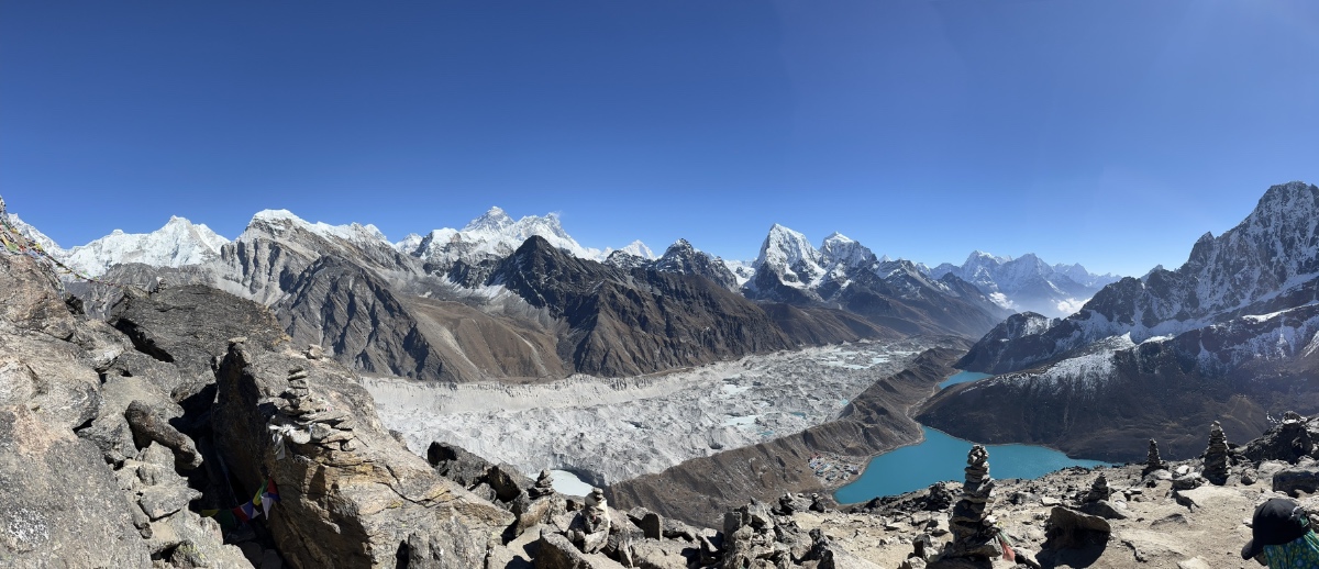 Zdar! Tyden jsem byl bez netu. Wifi (Everest link) mel jen bracha na svym telefonu. Ncell to holt nemel cca od Dingboche pokryty. Uz jsme zpatky v Namce Bazaru. Pocasi jsme neli celou dobu skvely. Dali jsme 2 sedla (Kongma la, Cho la). Na treti jsme se vykaslali s valili z Gokya rovnou na Namče… plus jsme dali Chokung-Ri, Gokyo-Ri, Kala Patrhar…) Celkove tedy pres 5500m trikrat tusim. Vyskovka nebyla vubec, ale unava ve vysce samozrejme ano Vyhled z Gokyo-Ri, kdy jsou videt 4 osmitisicovky (Cho Oyu, Everest, Lhotse a Makalu) -