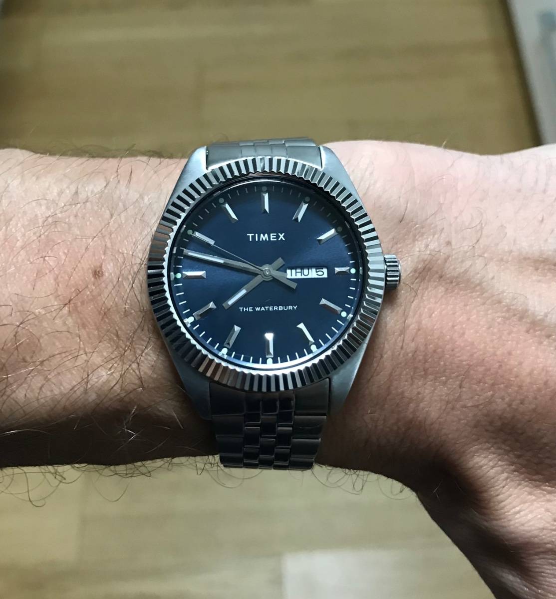 Jak jsem od zacatku tusil, všechno, mimo DJ byly slepé uličky, ze kterých jsem po par dnech sešel, protože Rolex… Postupně to bylo jasnější a jasnější. 1. Cca mesic je mám na ploše telefonu a vůbec se neomrzely, což i Omegy nevydržely ani par dni. 2. Zkouska zakoupenych Timexu, jestli me bude bavit vroubkovaná luneta a i na Timexech je skvela:-). 3. Po jiných hodinkách už se ani nedivam. Takže zbyva jedina vec. Přesvědčit se, ze chci dat tolik za hodinky, což se mi zatim nedaří, ale stejne vim, ze ten čas jednou přijde:-). Mimochodem, za těch par kacek ani ty Timexy nevypadají zle, ačkoliv much par mají:-). Od ne úplně padnoucího dne s datumem, až trochu Chrastice tah, ale jinak se nosi prijemne a naživo působí docela v pohodě. Svoji službu udělaly:-).