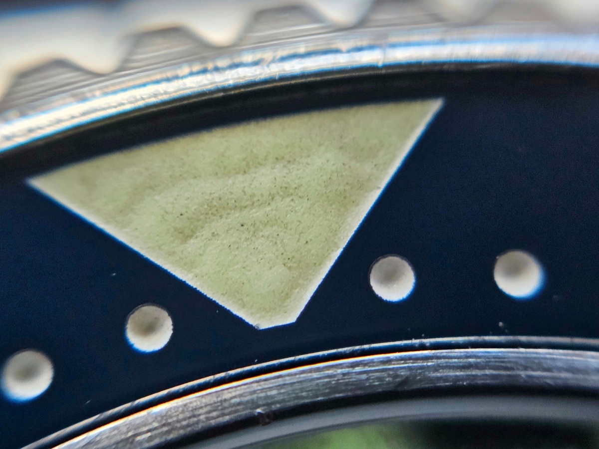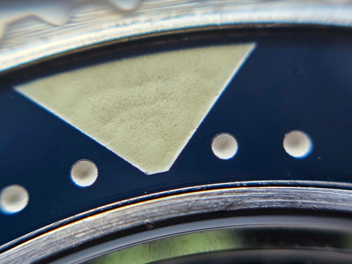 @xbraj19 jj všimnul hned, ale nejedná se o nějakou barevnou vadu, je to spíš chyba nějakého vrstvení si myslím. Nicméně tohle mi nevadí. Kdyby měly ty hodinky 12mm na výšku, tak není lepších hodinek na léto, ale i tak jsou perfektní. Edit: zkusím lumibod někdy vyfotit makrem, ať to pořádně prostudujeme