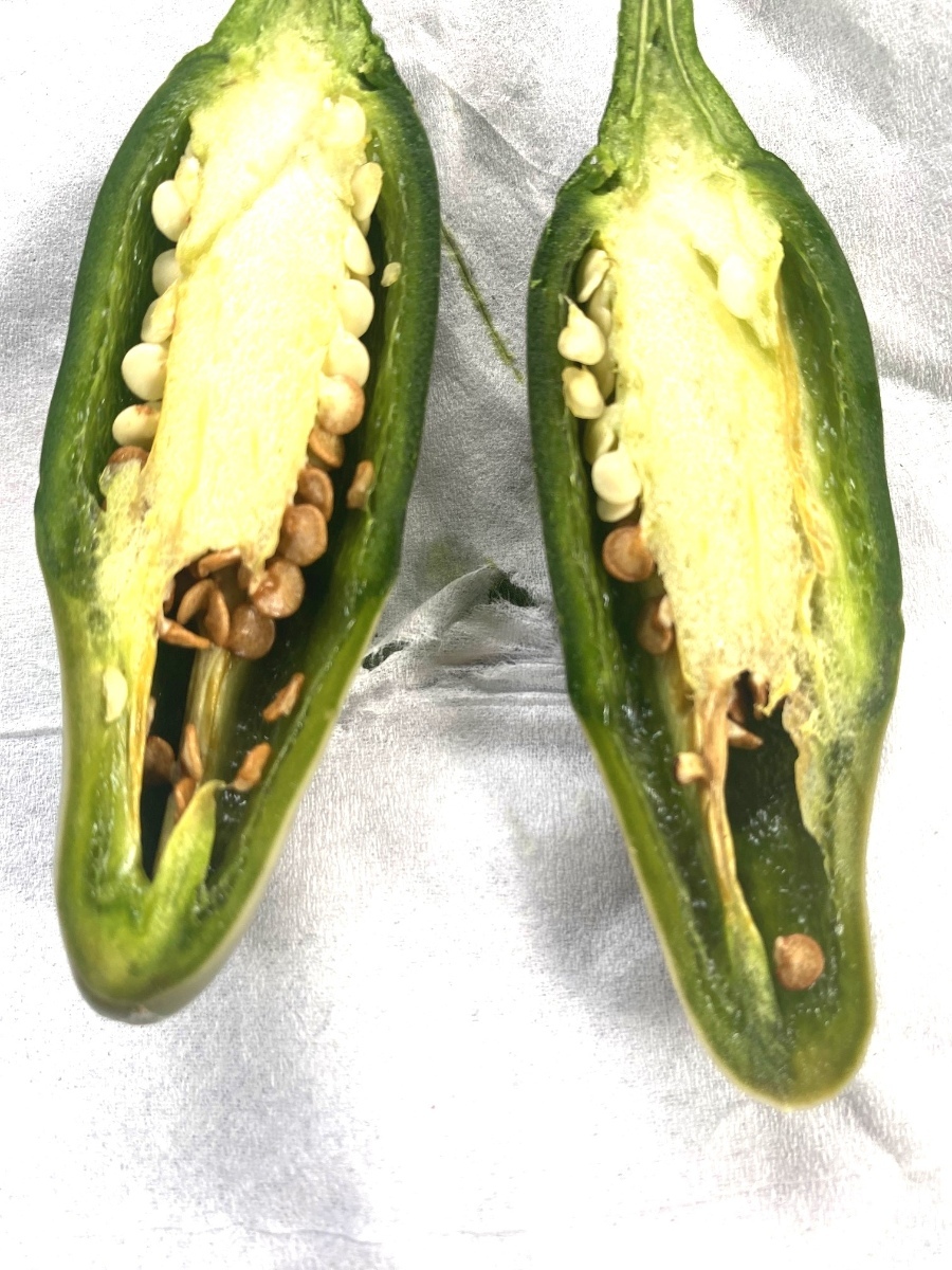 Ahoj, díky za reakce. Rostlina je venku v květináči, přesný druh neznám, dostal jsem pár sazenic. Celkově rostlina vypadá naprosto zdravě, listy nemají žádné známky napadení nebo nedostatku živin. Hnojím střídavě hoštickými slepičinci a Kristalonem Gold, vše v zálivce. Konzistence - čím dále od stopky, tim měkčí, houbovitější, v řezu snad také nic neobvyklého, až na barvu semínek, ta se mi zdá podezřelá, ale jsem začátečník, tak nevím ... Určitě zkusím doplnit vápník.