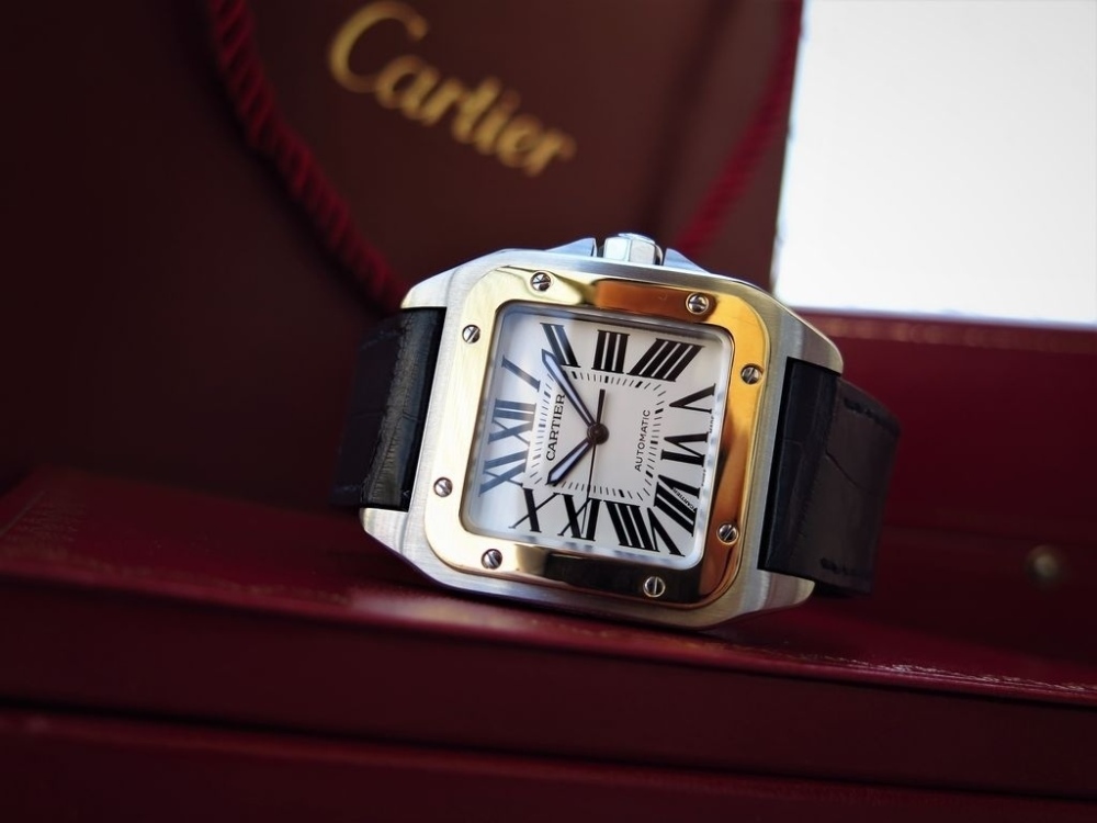 Prodávám po delším uvažování hodinky Cartier Santos 100 ref W20072X7. Tato řada byla představena v roce 2004 u příležitosti 100. výročí původních náramkových hodinek Santos, které byly poprvé vytvořeny v roce 1904 pro letce Alberta Santose-Dumonta. Jedná se o modernizovanou verzi klasických hodinek při zachování jejich ikonické DNA, ciferník zdobí charakteristické římské číslice Cartier a ručičky z modřené oceli, to vše orámované charakteristickými odhalenými šrouby na zlaté lunetě. Hodinky jsem kupoval zde před třemi lety od váženého člena Jeronima, který mi dal svolení k použití fotek, kdyby se opět dostaly do prodeje. Jelikož si troufám říct, že stav je na 95 % nezměněn, tak jsem je nefotil znovu. Takhle dobře bych to ani nedokázal. Přibyly pouze vlasovky na lunetě a na sponě od běžného kancldivingu, leštit je ale nehodlám. Žádné větší záseky ani rýhy jsem nenašel. V roce 2021 proběhla renovace, čištění a oprava v Onyxu za cca 8000 Kč, doklad je k dispozici. Řemen není původní, ale je to aligátor od ABP Concept v ceně 260 eur. Stále je ve velmi slušném stavu. Hodinky jsem nenosil denně, ale jen občas. V tuto chvíli je řemen nastaven na zápěstí 19–19,5 cm. Model: Cartier Santos 100 XL Reference: W20072X7 Materiál pouzdra: Ocel + zlatá luneta Velikost pouzdra: 38×51 mm Sklo: safír Rezerva nátahu: 42 hodin Kalibr: 049 Balení je kompletní, jak je vidět na fotkách, včetně papírové tašky. Cenu si představuji 169.000 Kč, rozumným návrhům se nebráním, výměnu nechci. Předání nejlépe osobně v Praze. Nemám dobrou zkušenost se zasíláním cennějších kusů. Dotazy, připomínky, návrhy apod. pouze do SZ.