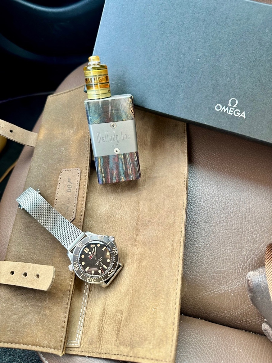 Opat ma chytila mania 007, po rozpredaji zopar kuskov zo zbierky ideme odznova. Prvy dojem v skratke: ultra lahke kvoli titanu a az neuveritelne, tah aj ked bol kritizovany hlavne kvoli systemu zapinania a nahromadeniu koncov pod motylovkov je za mna super, nevadi to aj ked moja mensia ruka ma toho pod sponou celkom dost, krasny vintage look aj ked lumi potrebuje poriadne nasvietit a potom je to celkom fajn, unstarsich modelov to bolo vyraznejsie a taktiez odpocet casu z cifru je dobre citatelny, niekde som zachytil, ze to je problematicke. Cenovka : tak to je priestrel Omegy ale poriadny , ale v podstate na prve titanovky a rozlucku s Danielom sa ani necudujem... prve cvaky z auta a potom cvajnem este full box ... fotky Daniela su pozicane