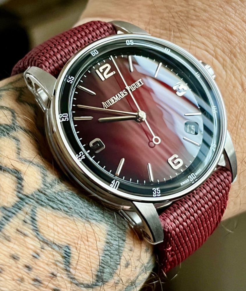 Hermes H08 Na fotkách to bylo jen kudy z nudy, na ruce neskutečné nadšení. Inhouse z továrny Vaucher(Richard Mille a Parmigiani) a zpracování na úrovni HH. Váha 89g. po sundání dvou dílků. 100WR, šroubovací korunka, skvělá lumi na všech číslicíc, motýlková spona a prima 70's look. Sháněl jsem je 3 měsíce, chtěl jsem je na oranžové gumě ale jsou beznadějně vyprodané. Dle Hermes byl toto poslední kus. A nakonec jsem za ten tah rád, je super. Jen škoda že gumu zvlášť koupit nelze.