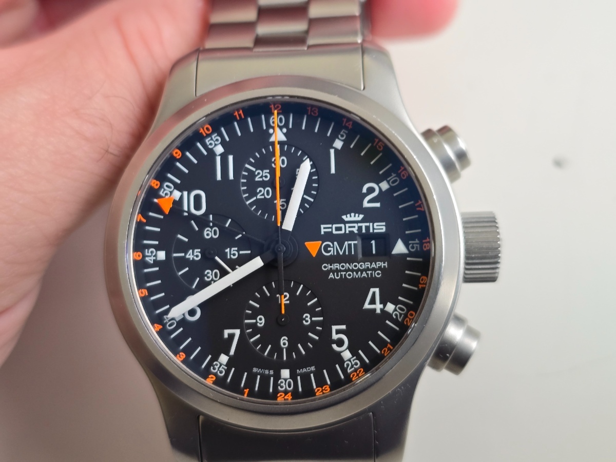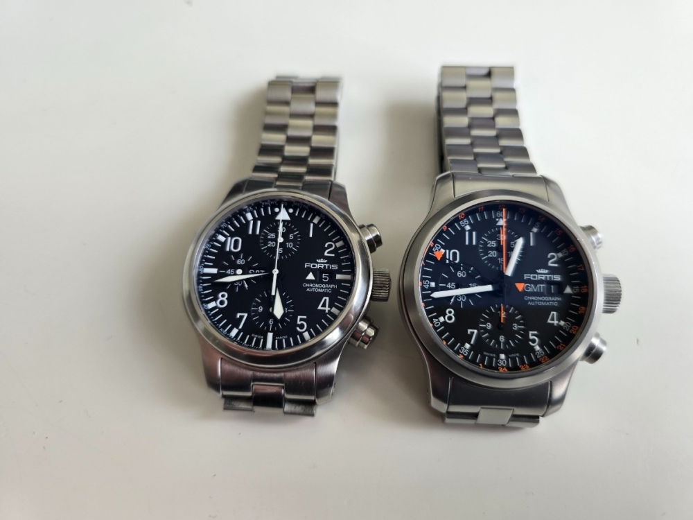 Zdravím, nabízím k prodeji tyhle modely Fortisek. 1. Pilot Professional Chronograph GMT Velmi dobrý původní stav. Nevysisovana oranžová na cifru, žádné rypance na pouzdru nebo tahu, extra dílky, papíry plus venkovní krabice. AR ma drobné vlasovky, ale nic tragickeho. Původní majitel udělal servis, ale doklad není. Celkově celmi dobrý stav za kultovni model ze zlaté éry Fortisu. Cena 49 000 Kč 2. Pilot Chronograph Day-Date Velmi dobrý stav. Komplet balení s doklady. Žádné rypance na pouzdru nebo tahu, extra dílky, AR ma drobné vlasovky, ale nic tragickeho. V Onyxu proběhlo pretesneni a regulace chodu. Cena 39 000 Kč Ke každým hodinkám extra řemen - kordura nebo kůže, dle výběru prvního zájemce. V případě odběru obou naráz je dohoda na ceně. Výměny spíše ne. Možná max. Sinn EZM 13 nebo 13.1. Nebo Breitling Aerospace na tahu.