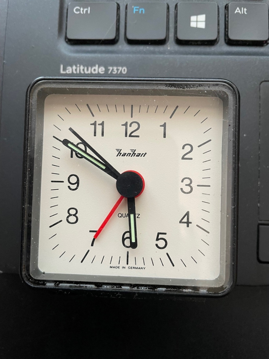 Kluk nasel ve skrinich na chalupe tenhle budik po babce, uplne jsem zapomel, ze to nekdy mela. Samozrejme vytekla baterka, tak jsem od toho moc necekal. Klukovi je 9 let a dal jsem mu to jako jeho prvni opravu hodin - orypal sroubovakem, ocistil slivovici a voila - funguje. Je to jen quartzova tretka, ale mel radost, ze to rozchodil. A me fakt potesilo, jak ho ty hodiny zajimaji a povidali jsme si o Hanhart historii, fliegerech a tak