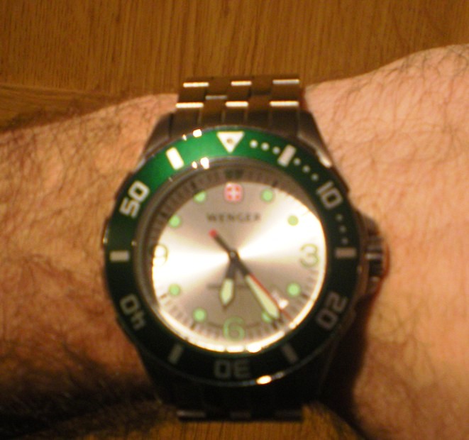 Fajn, někdo kdo je aktuálně má :-) No tak to máš těžký, taky jsem se už setkal, že mi někdo řekl, že mám pěkný fejky Breitlingů a že o nějakých takových taky uvažuje - co jim na to má člověk říct...., asi nejspíš to, ať si je koupí a cestou ať se staví u vietnamců na tržnici a svý starý koupí kabelku Vuitton, ať si taky užije luxusu :-) Já mám už bytelný troje Wengery, ale tyhle se mi prostě líbí, a taky jsou navíc bytelný, nemůžu si pomoct. Na druhou stranu když je budu střídat, tak budu muset pořád hlídat, aby se mi automat nezastavil, abych to nemusel pořád seřizovat :-(