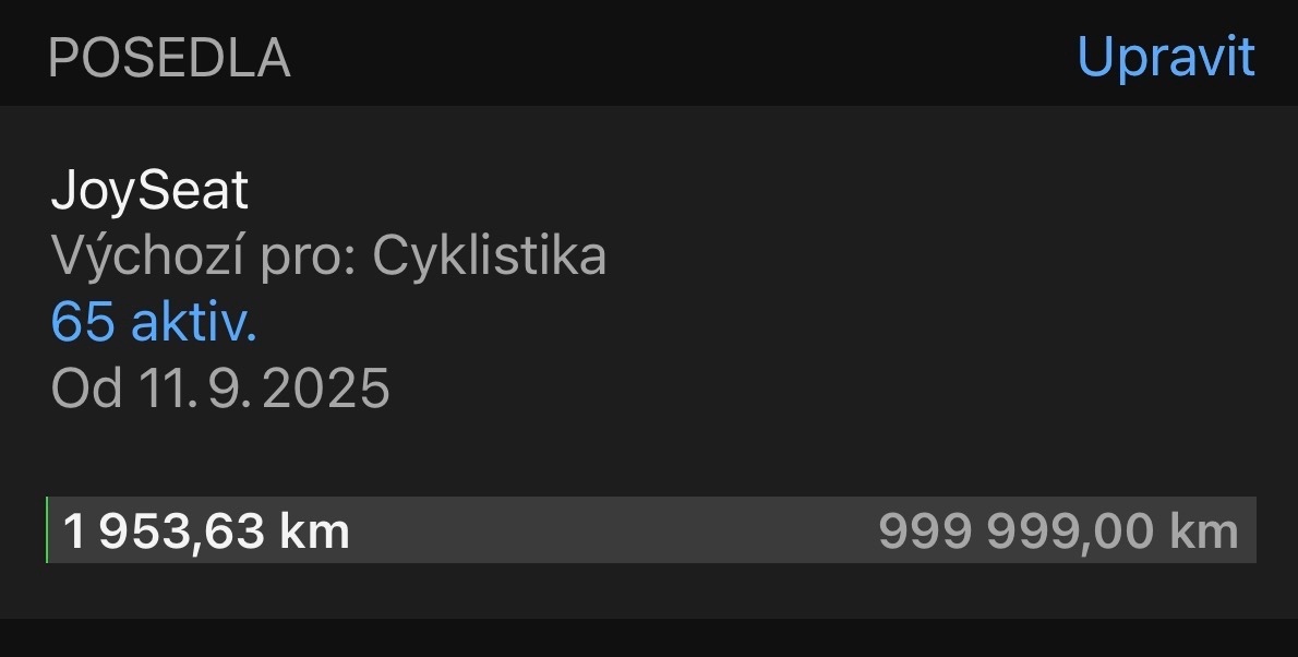 Tak po necelých 2.000km (viz. screen) mohu ohodnotit sedlo od Posedla, model Joyseat 2.0?? (nevim jestli to bylo 2.0 nebo už aktuální 3.0), verze s hliníkovými lyžinami, pro časovku (údajně lépe měkčená přední část). Začalo to koupí kola na kterém bylo sedlo Fyzik tempo argo. Stejné sedlo jsem měl na předchozím kole a byla to lahoda, bohužel jsem kolo prodal i se sedlem protože na novém kole bylo stejné. Jenže zadek měl opačný názor - hlavou dolu jsem totiž špatně přečetl rozměr (160mm vs. 150mm). Ten půlcenťál na každý straně prostě chyběl rozteč kostí mam totiž 162mm. Chtěl jsem teda zkusit Posedla. Změřil jsem si zadek podle jejich podložky s pěnou, vysolil 8 tisíc kč (po slevě 10% od Petra Vabrouška), 4 týdny čekal a nahodil na kolo. Tím, že jsem měl konečně správný rozměr tak to bylo hned znát. Jenže to bylo vše - Joyseat byl tvrdý od začátku a pak ještě tvrdnul, přední část údajně lépe měkčená mi teda vůbec měkčená nepřijde, prostřední kanál na úlevu choulostivých partií nic moc. S kolem jsem byl na fittingu takže jsem myslel, že si sedlo musim osedět, ale jak jsem už psal, sedlo spíš tvrdlo a bylo víc nepříjemné než na začátku. Už jsem se na to vykašlal, Zásilkovnou mi jede ověřený milovaný Fizik Argo ve správném rozměru 160mm (od 160 do 169mm rozměru sedacích kostí). Nemůžu se dočkat. Za mne Posedla prostě doporučit nemůžu.