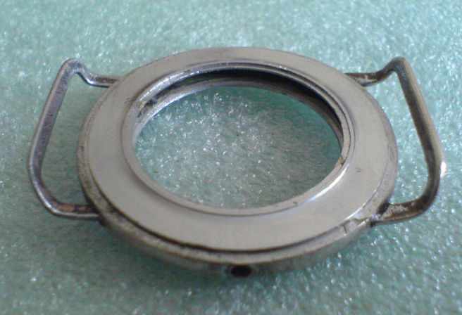 Oko pro pásek je zaletované do pouzdra pomocí obyčejné cínové pájky. Při přechozí opravě ulomeného poutka totiž hodinář do pouzdra vyvrtal 2 díry, zasunul a zevnitř zaletoval prodloužené konce drátu. Pouzdro hodinek je totiž duté a je tam dost místa. Drát tam potom držel dost pevně a nebylo jednoduché ho vytrhnout bez poškození pouzdra hodinek. Stejný postup - vyvrtané dírky a zaletování delších konců poutka jsem využil i při své opravě. Vím že to není zrovna košer, správně bych asi měl dírky zaslepit, to poutko udělat přesně k pouzdru a přiletovat zvenku. Jen mám obavu že by to tak dobře nedrželo a nevyhnul bych se změně barvy (modré duze) pouzdra kolem letování. Navíc v dutině poudra nevyhnutelně zůstaly zbytky cínu po předchozí opravě.
