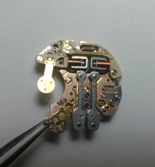 Tentokrát trochu zajímavější případ než oprava poškrábaného ciferníku: Omega Geneve Electronic f300Hz Chronometer, ref. 198.030 Původní majitel zapomněl vyměnit baterku a nechal hodinky "odpočívat" několik let ve skříni. Baterka po čase vytekla a způsobila oxidaci na povrchu můstků a zablokování jednoho ramene ladičky. Elektronika a kolečka naštěstí nebyly zasažené vyteklou baterkou a zoxidované, podařilo se mi strojek rozebrat a vyčistit. Sice zůstaly stopy po oxidaci na horní desce a musel jsem vyměnit 2 zrezivělé šrouby, ale hodinky teď běží s přesností -3 vteřiny/den. Před čištěním: Stav po opravě: