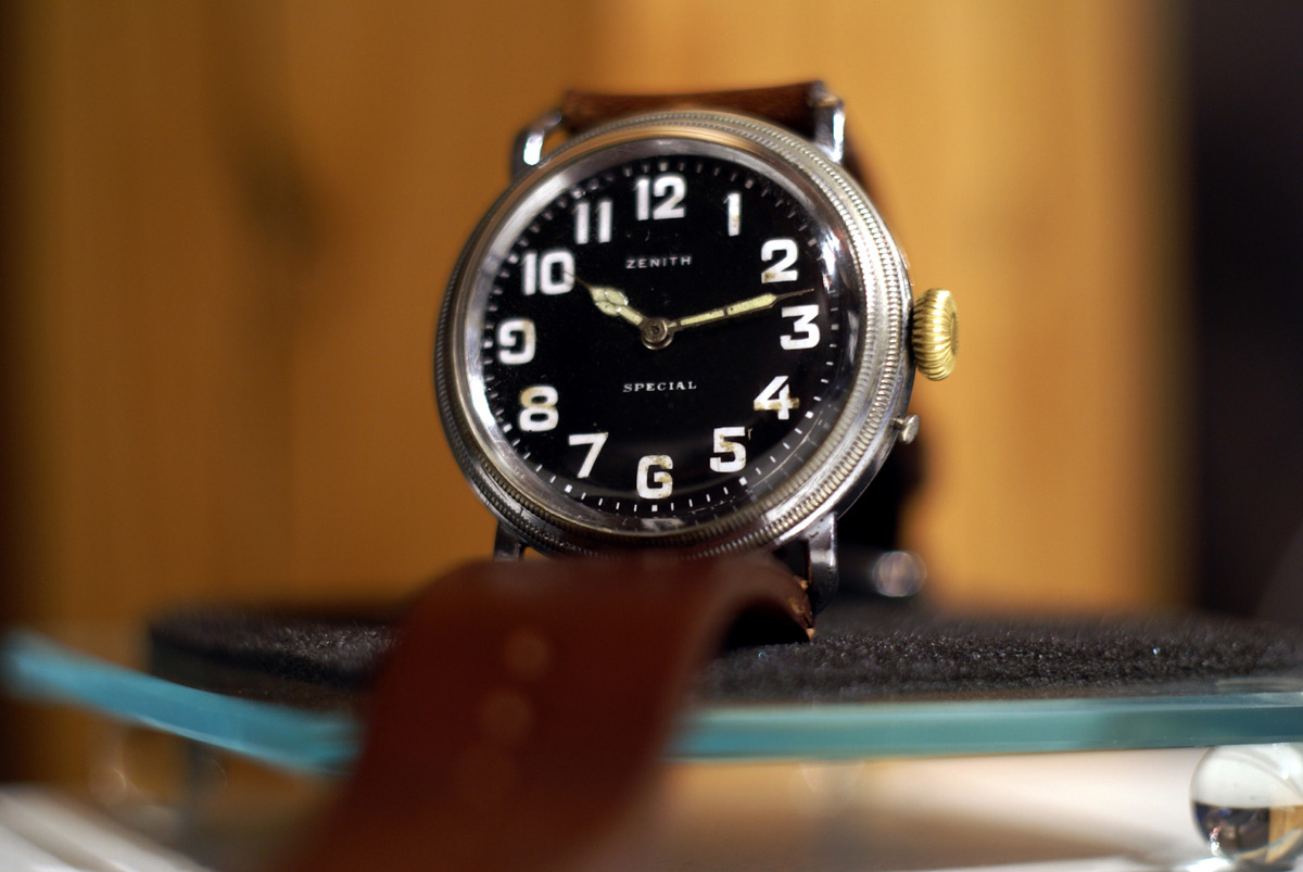 Doma mám na trámu (podkrovní byt) místo nástěných hodin pověšený na krásným koženým pásku 24mm Zenith special, dle vyjádření fabriky opustily brány výrobny 29.4.1930. Starší náramkové (kapesní teď nechám v klidu spát) asi nemám... Až přijedu domů, nafotím je a zveřejním na tomto veleprospěšném webu.