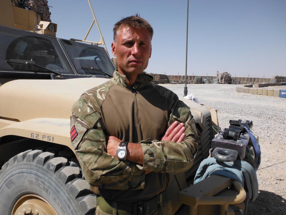 Na druhém snímku má podplukovník vlevo řemínek hodinek v plukovních barvách pluku Queens Royal Lancers. Učebnicová ukázka jak funguje používání plukovních barev v britské armádě