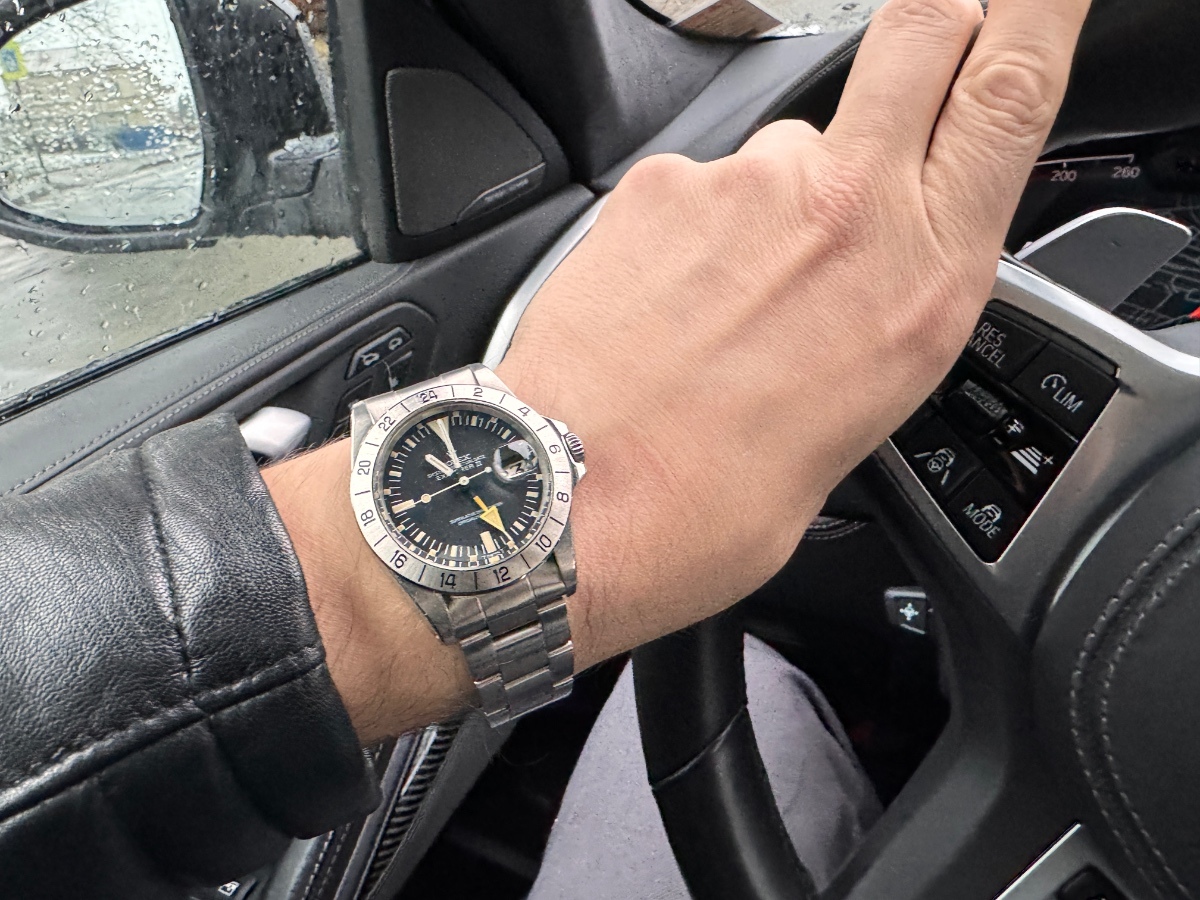 Jde o defektní barvu, která se v určitých sériích na 16550 (a na pár prvních kusech 16570) objevovala. Výrobní vada. Není to jako žloutnutí tritia na indexech...