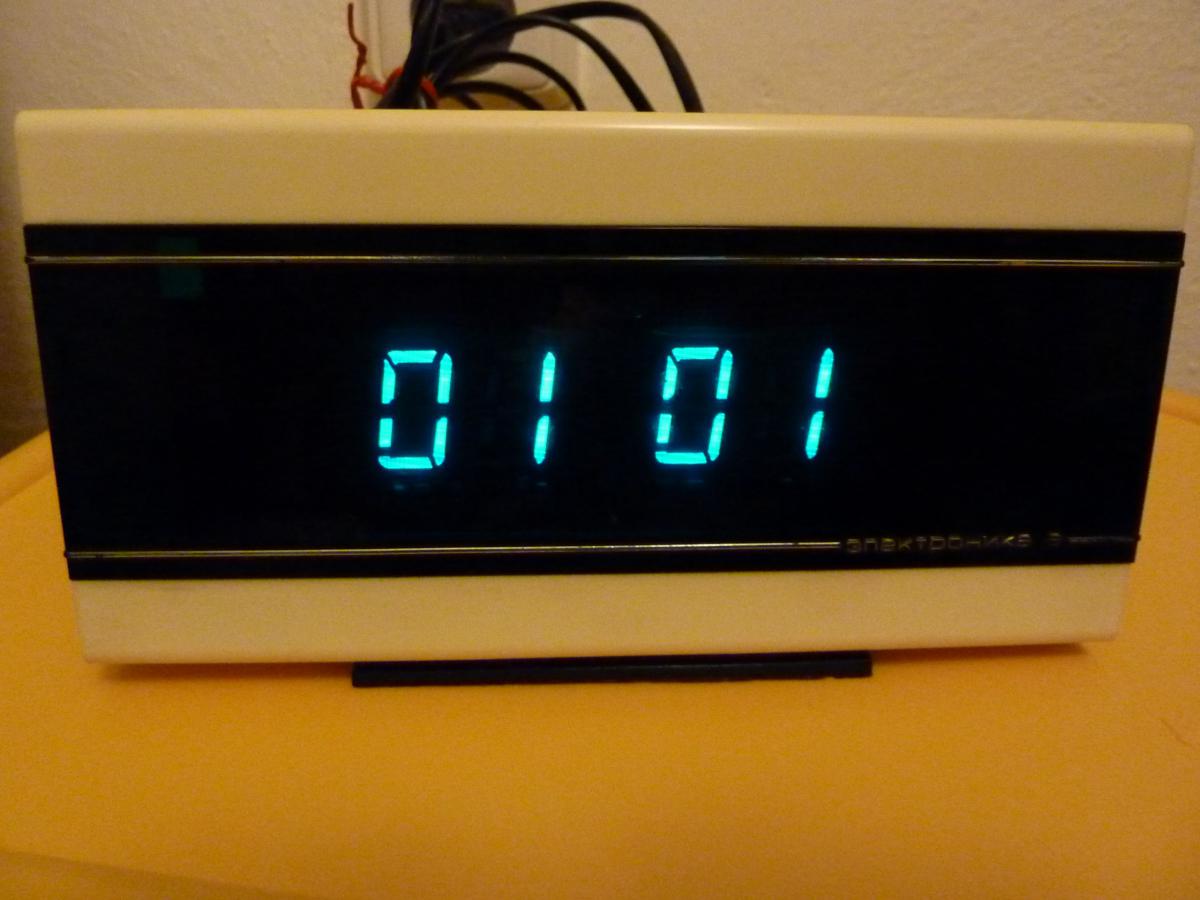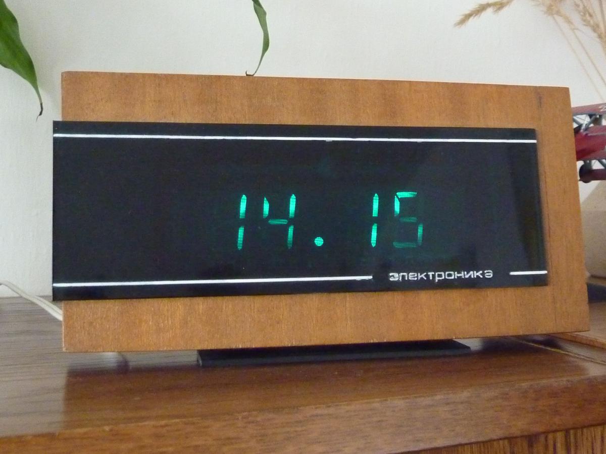 Jen tak retro připomínka s nádechem historie... V minulém století snad v každé domácnosti, dnes už retro a prakticky muzeální záležitost... nicméně, pokud přežily prvních pár let, stále fungují a to již desítky let (a většinou stačí vyměnit jen nafouklé elyty...). Zálohování baterií 9V. Zobrazovačem je VFD displej IVL1-7/5 - viz obrázek. Jeden z mých funkčních a stále běžících kousků ? vyrobeno podle ?ražby? 5/1984, tehdy za poměrně vysokou cenu 45 rublů (což bylo tehdy 450,- Kčs - pro ty co nepamatují tehdejší kurz ) Má někdo ještě funkční jiné modely?