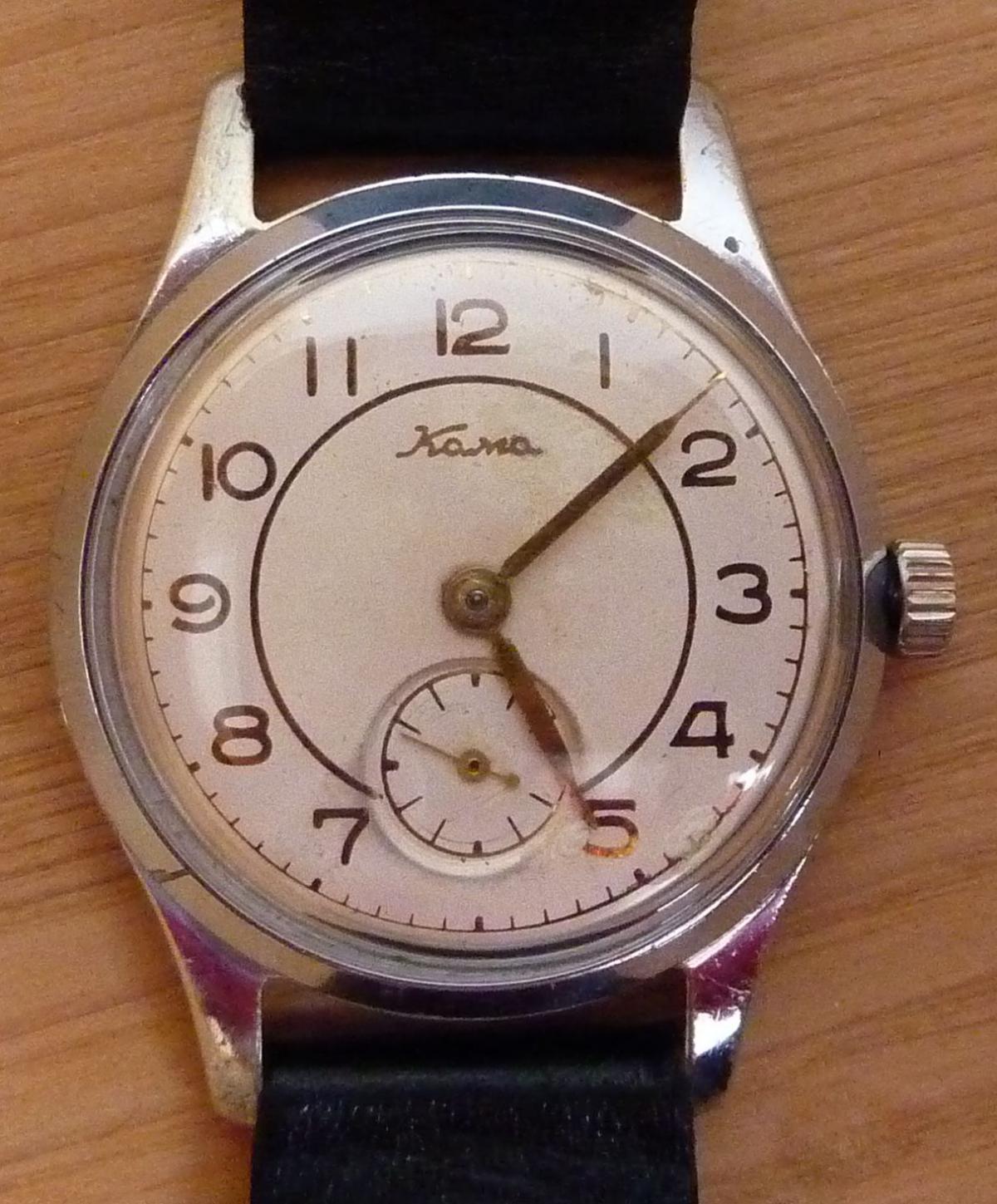 A ještě podobný ročník - Kama - vyrobeno v dubnu 1956, kalibr zřejmě upravený K26 na 17 kamenů - opět plně funkční, po vyčištění...