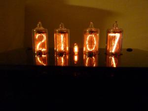 Je paráda, že je zde i tohle vlákno a proto můj drobný příspěvek... Představuji své první ?nixie clock?. Jsou ze stavebnice Velleman (je to tzv. ?Limited edition?)... Nějaký čas jsem sbíral informace a odvahu pustit se do hodin s digitrony a náhodou jsem narazil na tenhle komplet součástek a musel jsem ho prostě mít... Vlastní digitrony se již nevyrábí, svoji slávu zažily v letech padesátých až sedmdesátých (výrobci - Siemens, Philips a pod.), ve východním bloku se vyráběly do konce osmdesátých let (Tesla). V principu se jedná v podstatě o doutnavku, tedy nízkotlakou plynem plněnou výbojku se studenou katodou pracující v oblasti studeného výboje. Jednoduše řečeno, ve skleněné baňce naplněné zpravidla neonem o tlaku desetin kPa jsou dvě elektrody - několik katod mající tvar číslic nebo znaků a společná anoda, mezi nimiž vzniká výboj nezávislý na polaritě přiloženého napětí. Mezi výhody patřila relativně nízká spotřeba (jednotky watů), viditelnost za tmy a dlouhá životnost. Nevýhodou je nutnost napájení napětím 170 až 200V. Svým designem jsou dnes raritní záležitostí a upoutají každého ?pozorovatele? - pro řadu lidí je to naprosto neznámá věc. Vlastní digitrony se dají sehnat nejlevněji ?vypreparováním? z nějakého dnes již historického měřícího přístroje (čítače a pod.), dají se stále sehnat i ?NOS? digitrony, ale s postupujícím časem jejich cena roste a některé, hlavně ty s vysokými číslicemi a znaky se stávají luxusním zbožím... V mých hodinách jsou použity digitrony Siemens ZM1336K, výška číslic (katod) je 13.1mm.