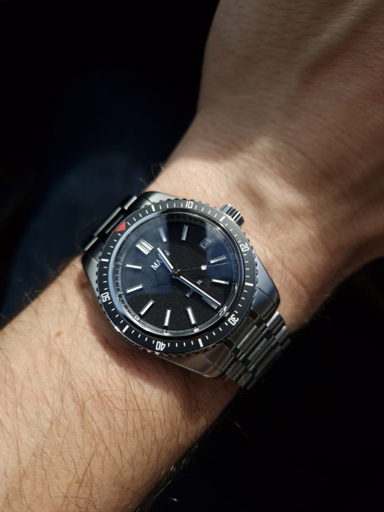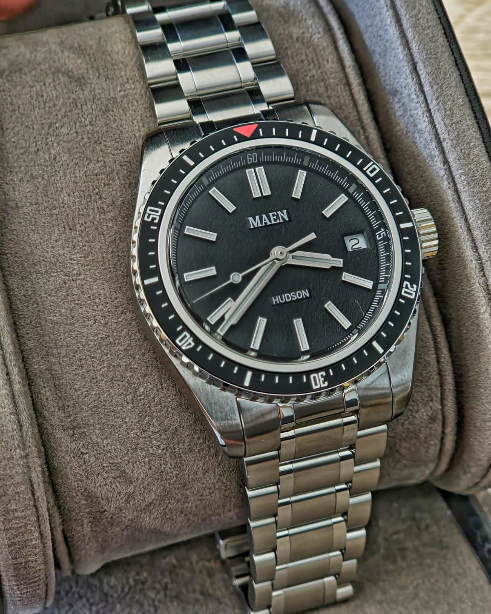 Ahoj, predám tieto už dnes nedostupné hodinky od značky MAEN. Ide o Hudson MK4 v quartzovej verzii. Hodinky majú známky kanceldivingu len na remienku (spone). Samozrejme Full set Cena: 400€ MOVEMENT Quartz GLASS Double Domed Sapphire Crystal CASE 316L Stainless Steel BRACELET 20x16 mm Stainless Steel Bracelet WATER RESISTANCE 30 ATM CASE DIAMETER 38 mm CASE THICKNESS 10.5 mm - 12.05 mm Including Glass LUG TO LUG WIDTH 46 mm
