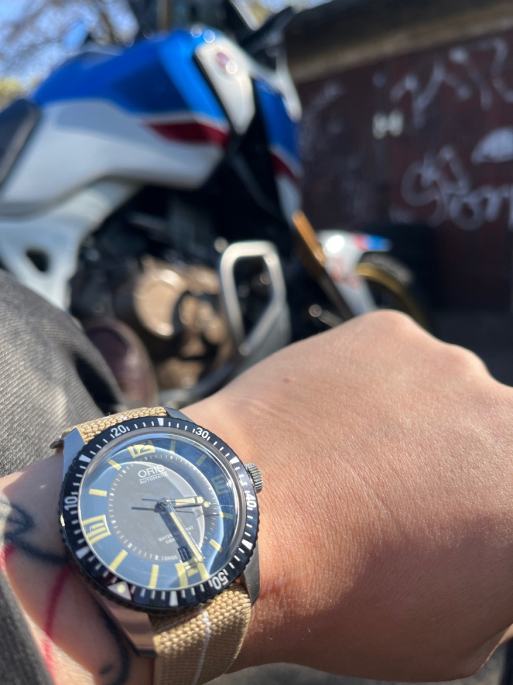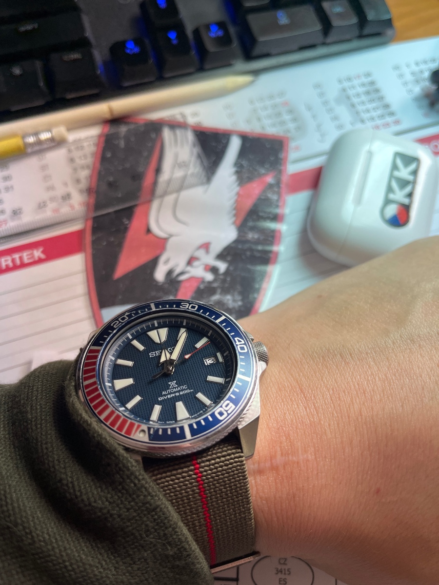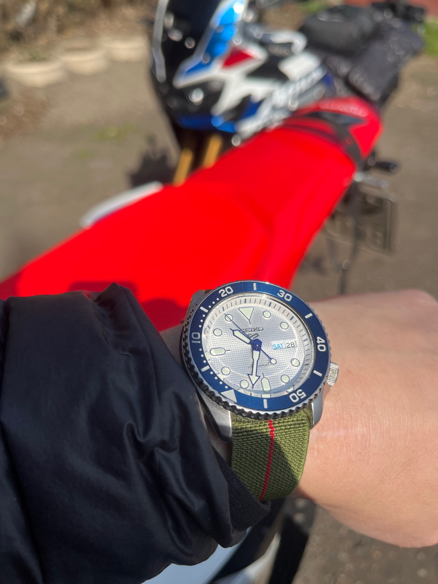 Pokus o českou vlajku na moto a moje pracovní Seiko.