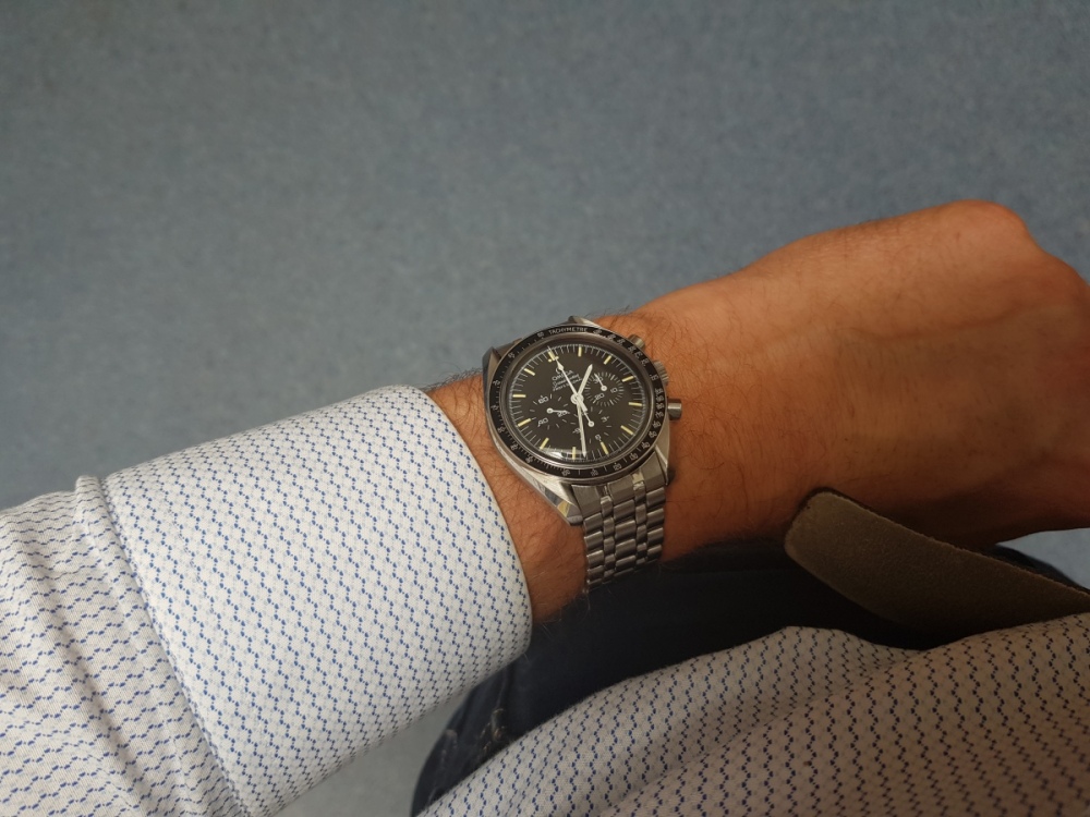 Slintal jsem po něm dlouho, tady je důkaz: Číhal jsem celkem dlouho a podařilo se. Je to tah značky Holzer, v mém případě vyrobený pro jednoho z distributorů švýcarských hodinek pro trh USA, společnost Joske's z Texasu. Tady je k tomu nějaké povídání: https://omegaforums.net/threads/holzer-jubilee.33058/ Tahy Holzer se dodávaly pro americký trh až do konce osmdesátých let, takže i na moje speedy použít jdou: https://www.fratellowatches.com/omega-speedmaster-professional-1450808/