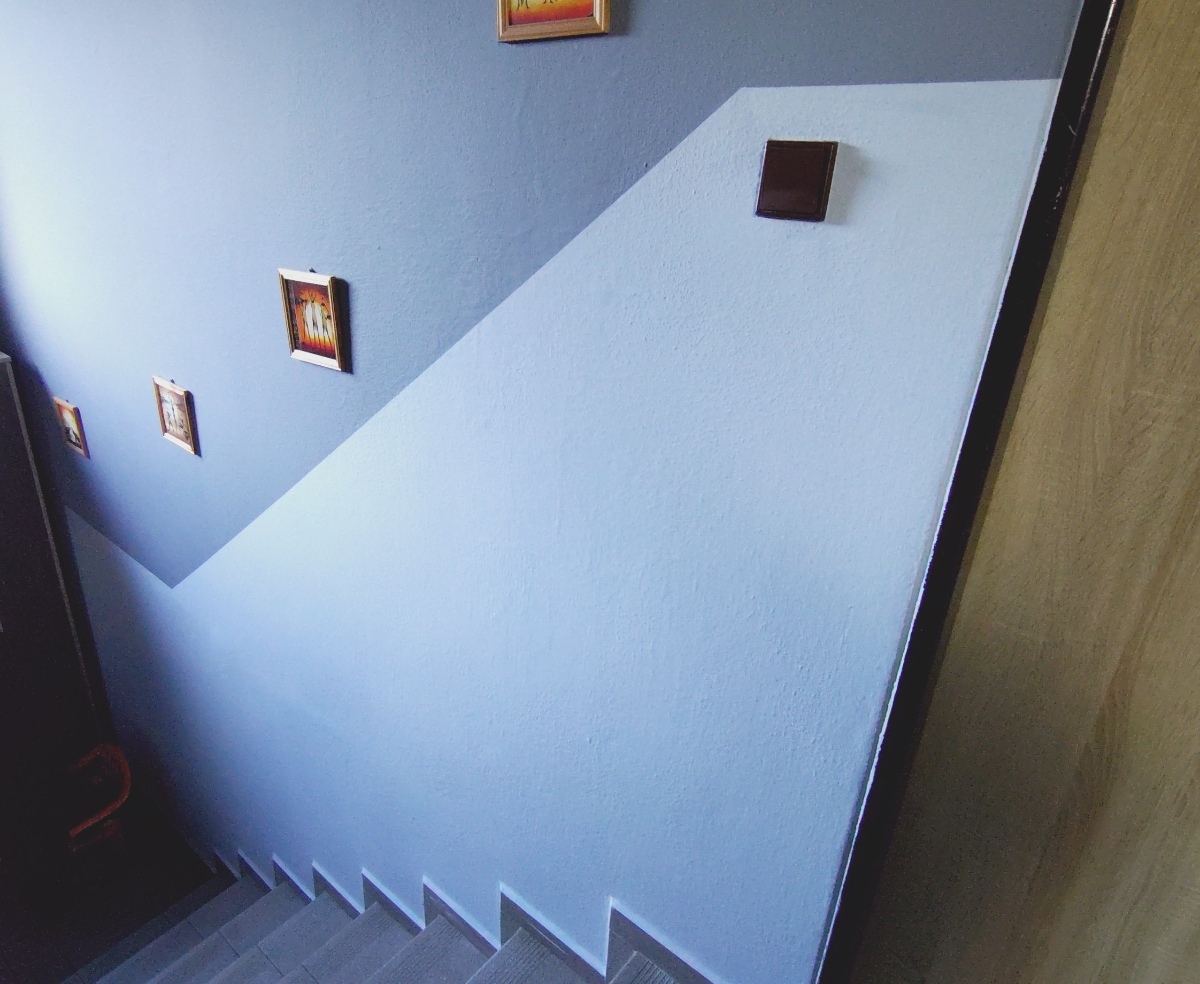 Malířovi tady zbyla šedá barva stejná co máme na schodišti, tak jsem nabídl manželce že ji opravím nějaký fleky a odřeniny, bylo to fajnový mokrý a pak to uschlo.... no upřímně, nadšená z toho moc není Zkoušel jsem vysvětlit že to je moderní, ale je to marný, je to marný